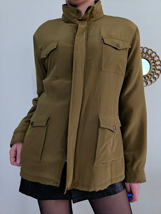 Giacca Kaki imbottita, pura seta