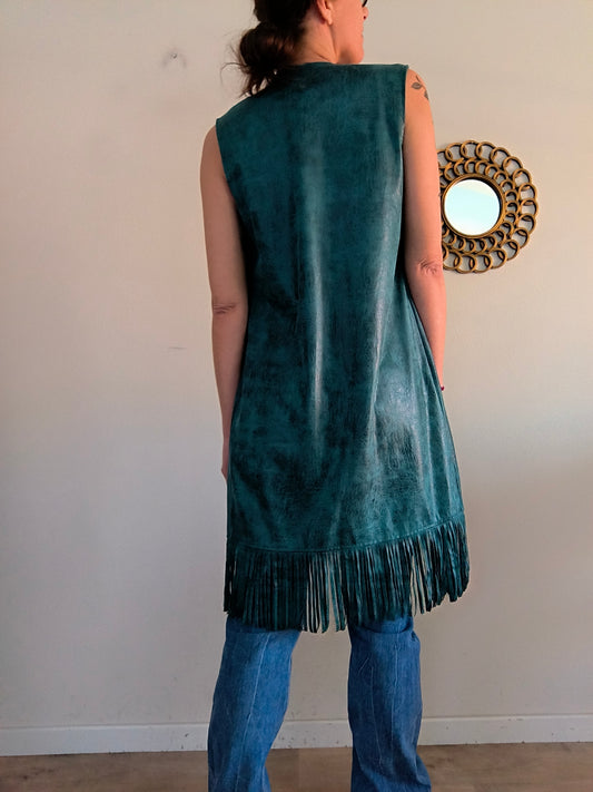 Gilet ecopelle ottanio sfrangiato