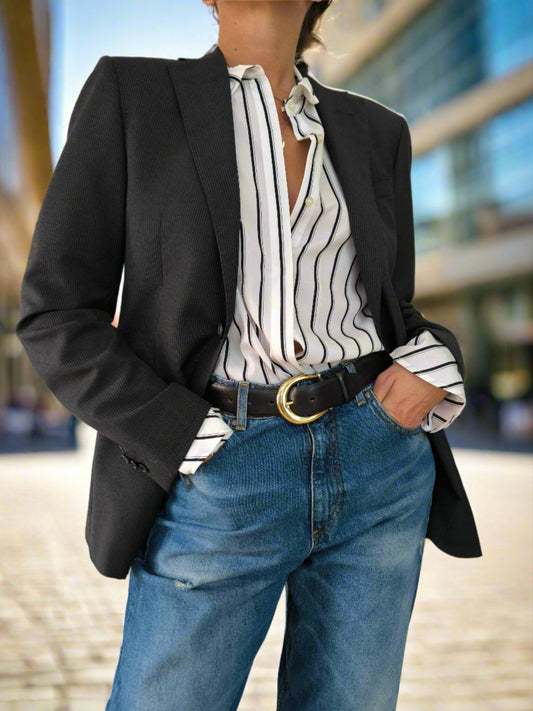 Blazer Abital Super 100's merino nero gessatino