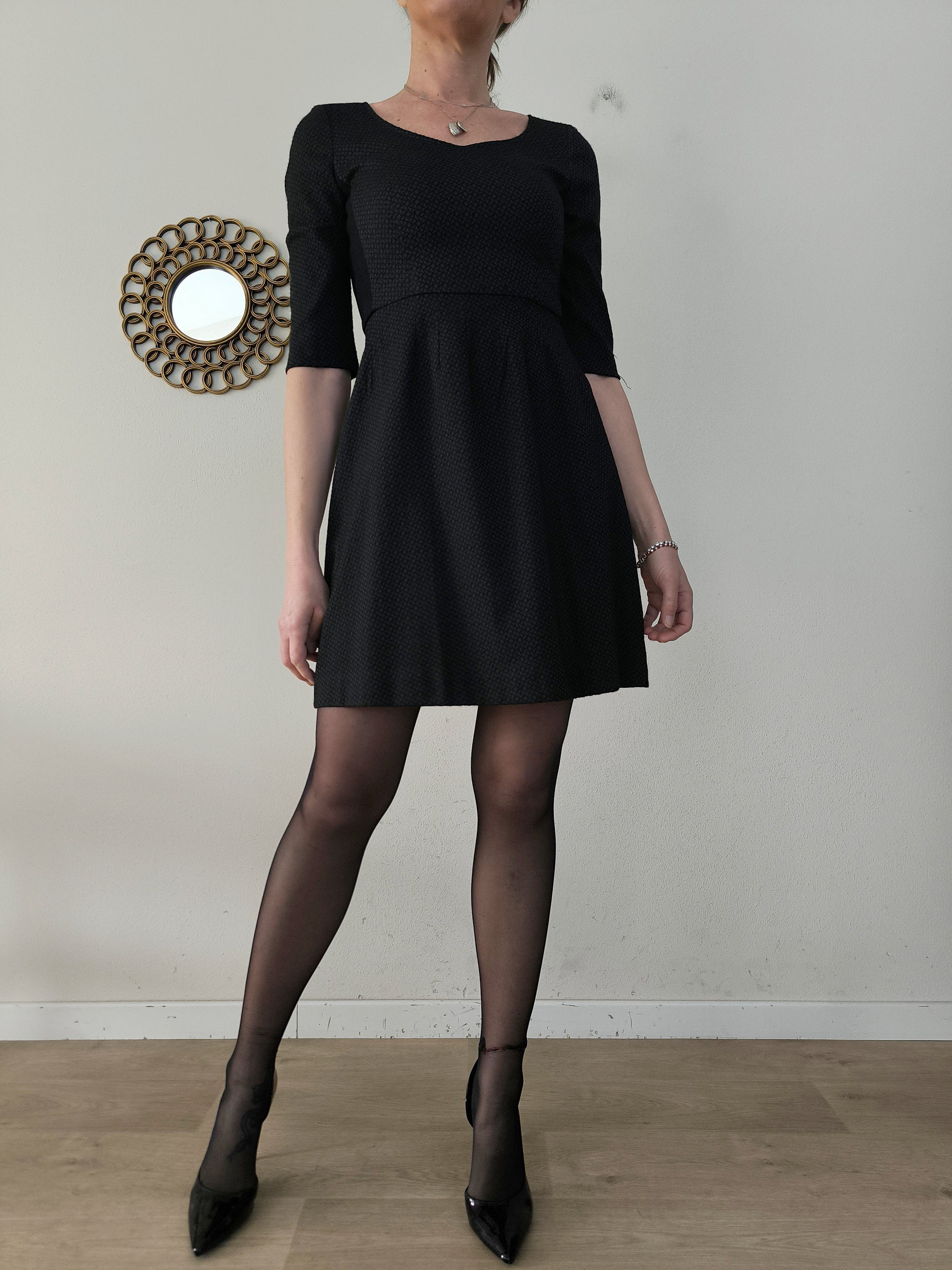 Abito Max &co, elegante e comodo, bon ton style, colore nero con piccola fantasia geometrica tono su tono.