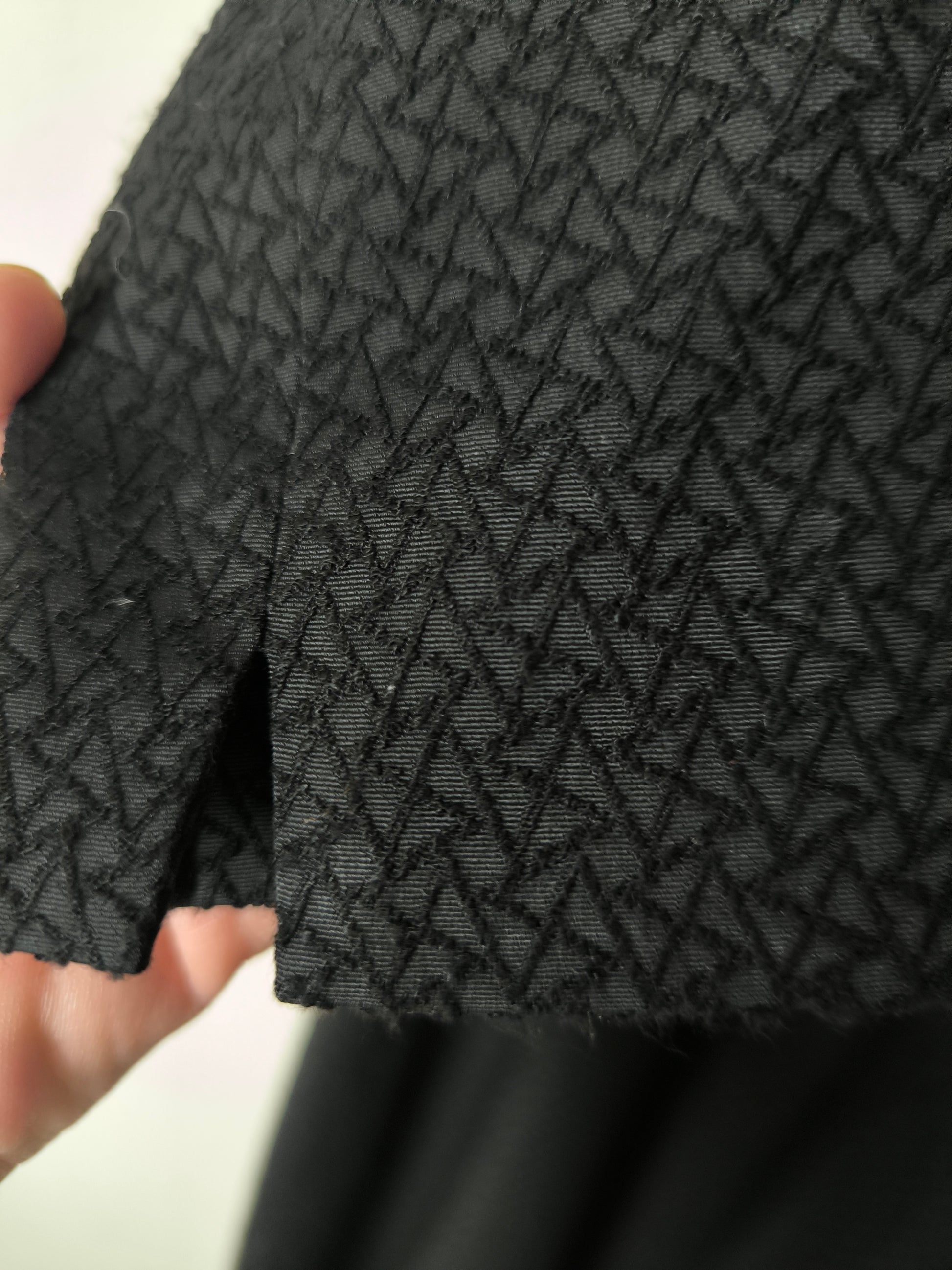 Tessuto elastico sulla schiena e tessuto strutturato per la gonna.