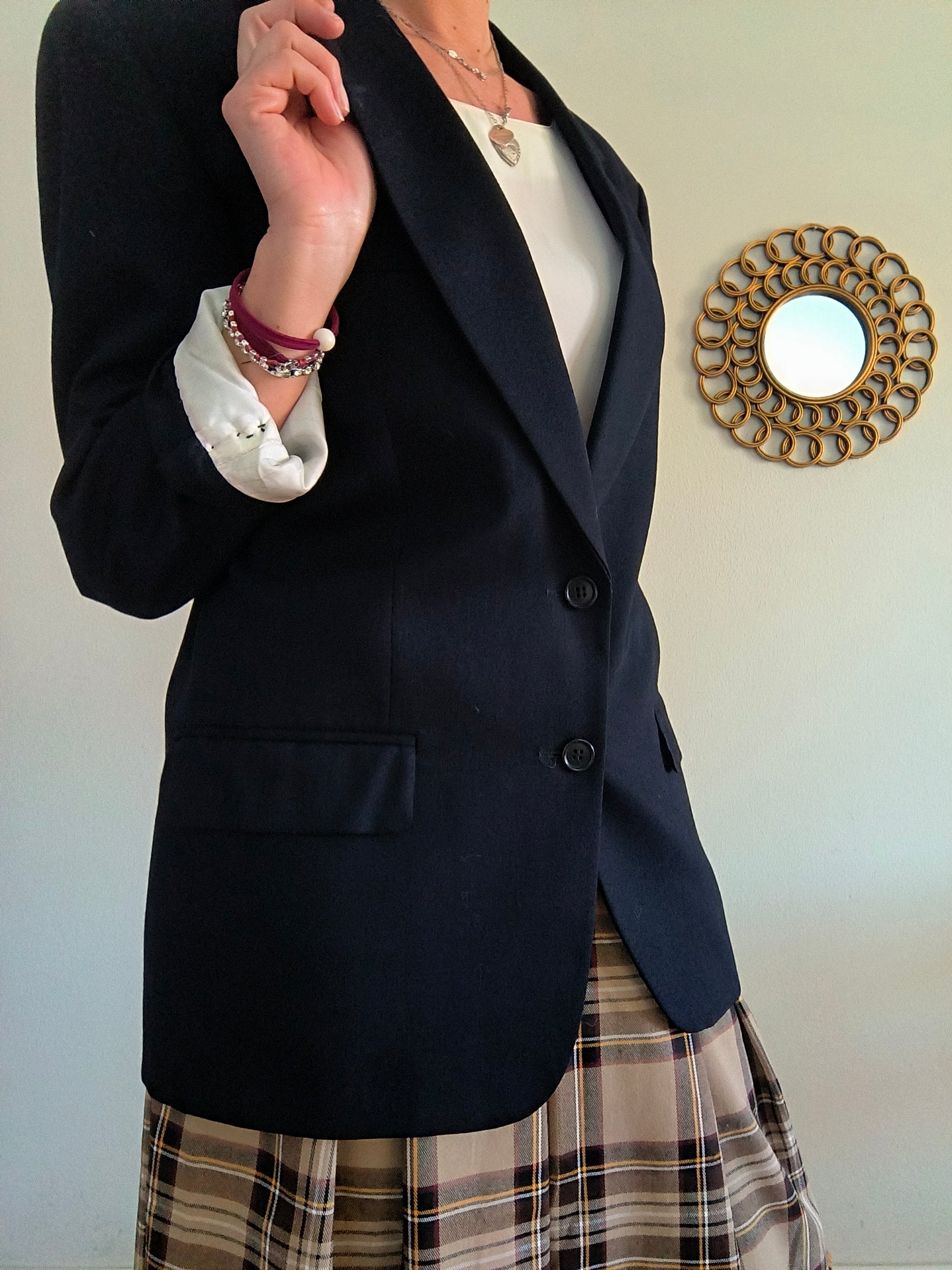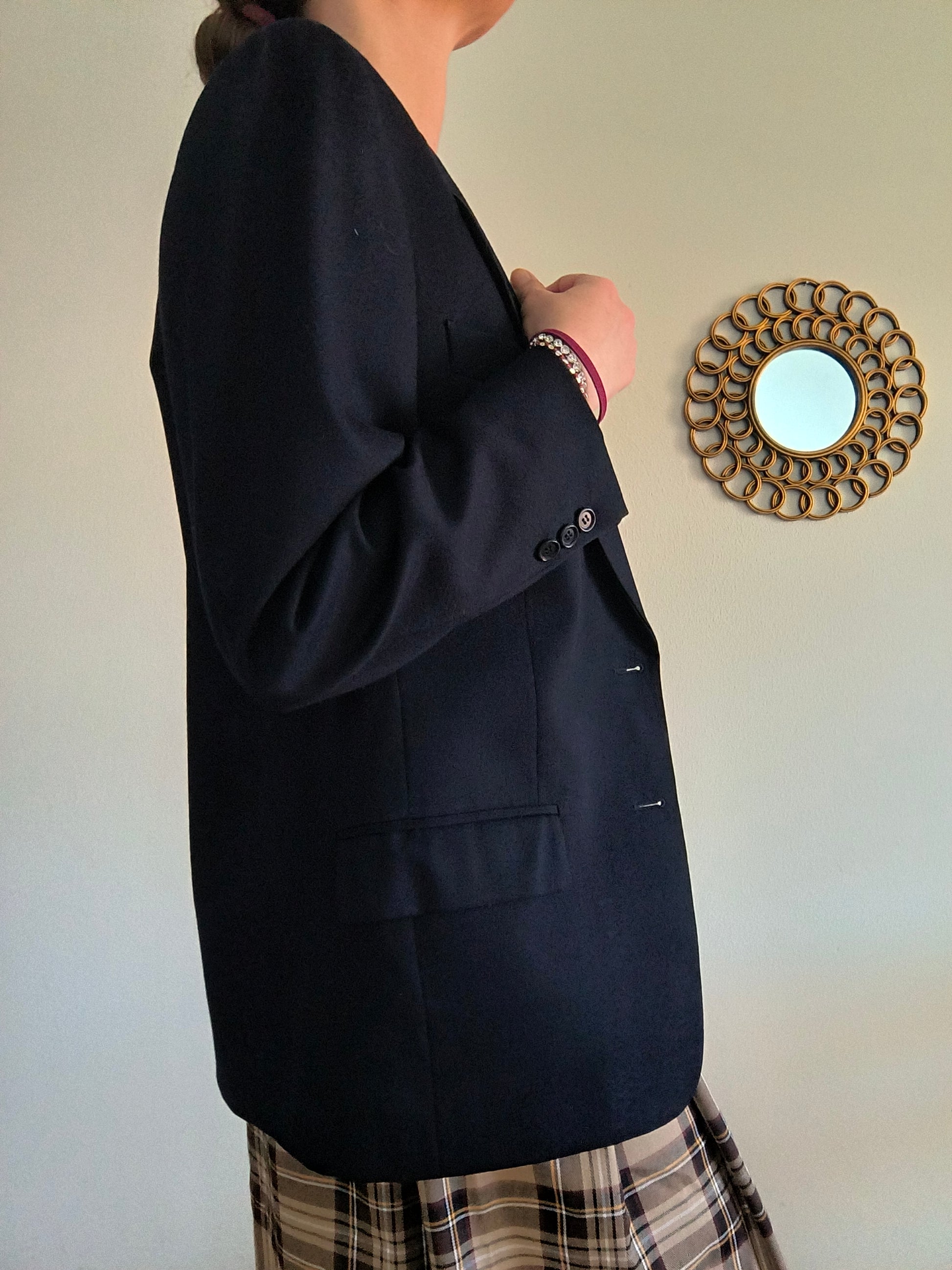 Bellissimo blazer in pregiata lana di Lessona, color blu notte, dal taglio impeccabile.