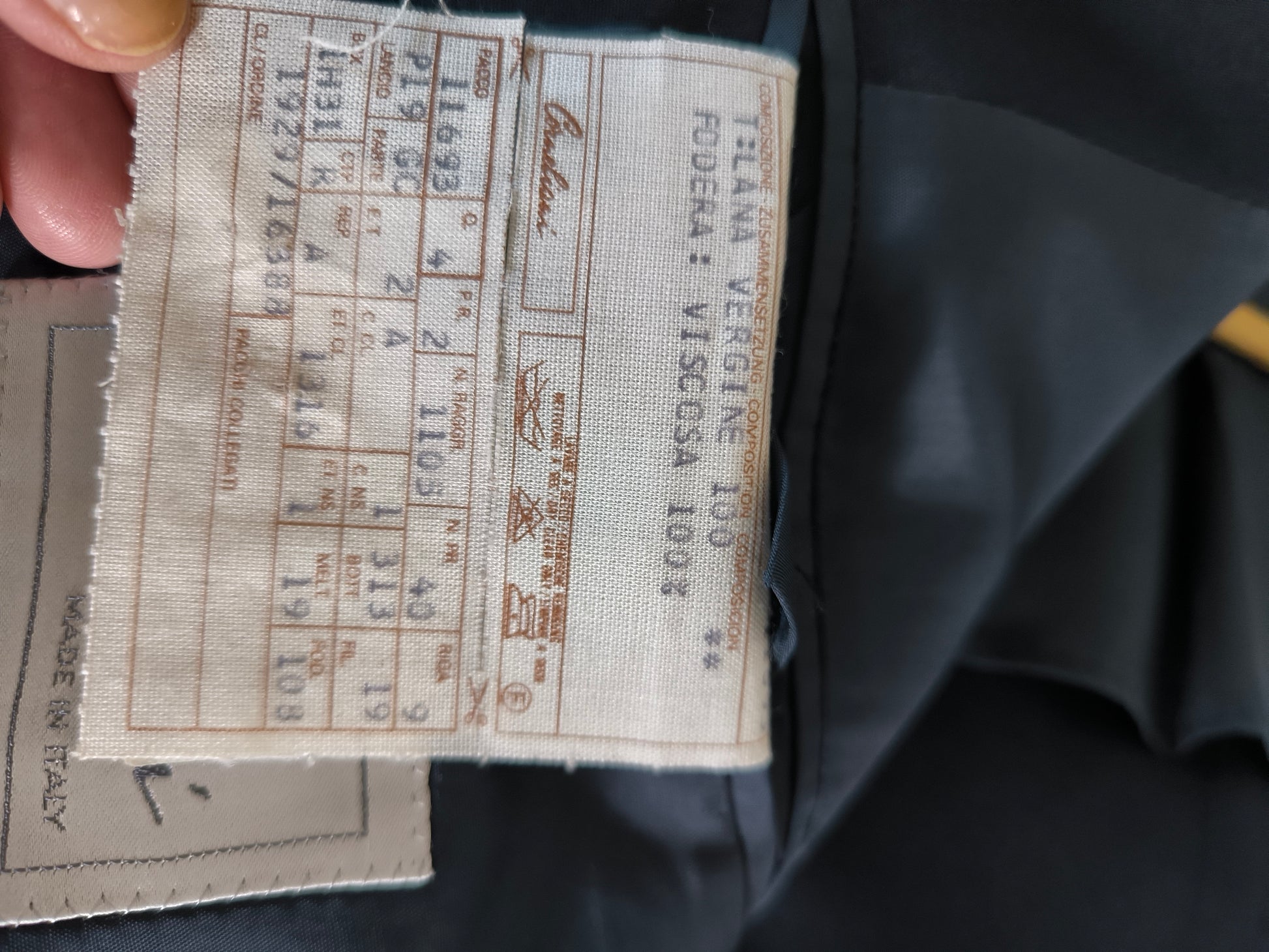 Blazer Corneliani, 100% pura lana vergine, pesantezza frescolana, abbottonatura centrale 2 bottoni, spacchi laterali sul dietro,vasche e fodera interna.
