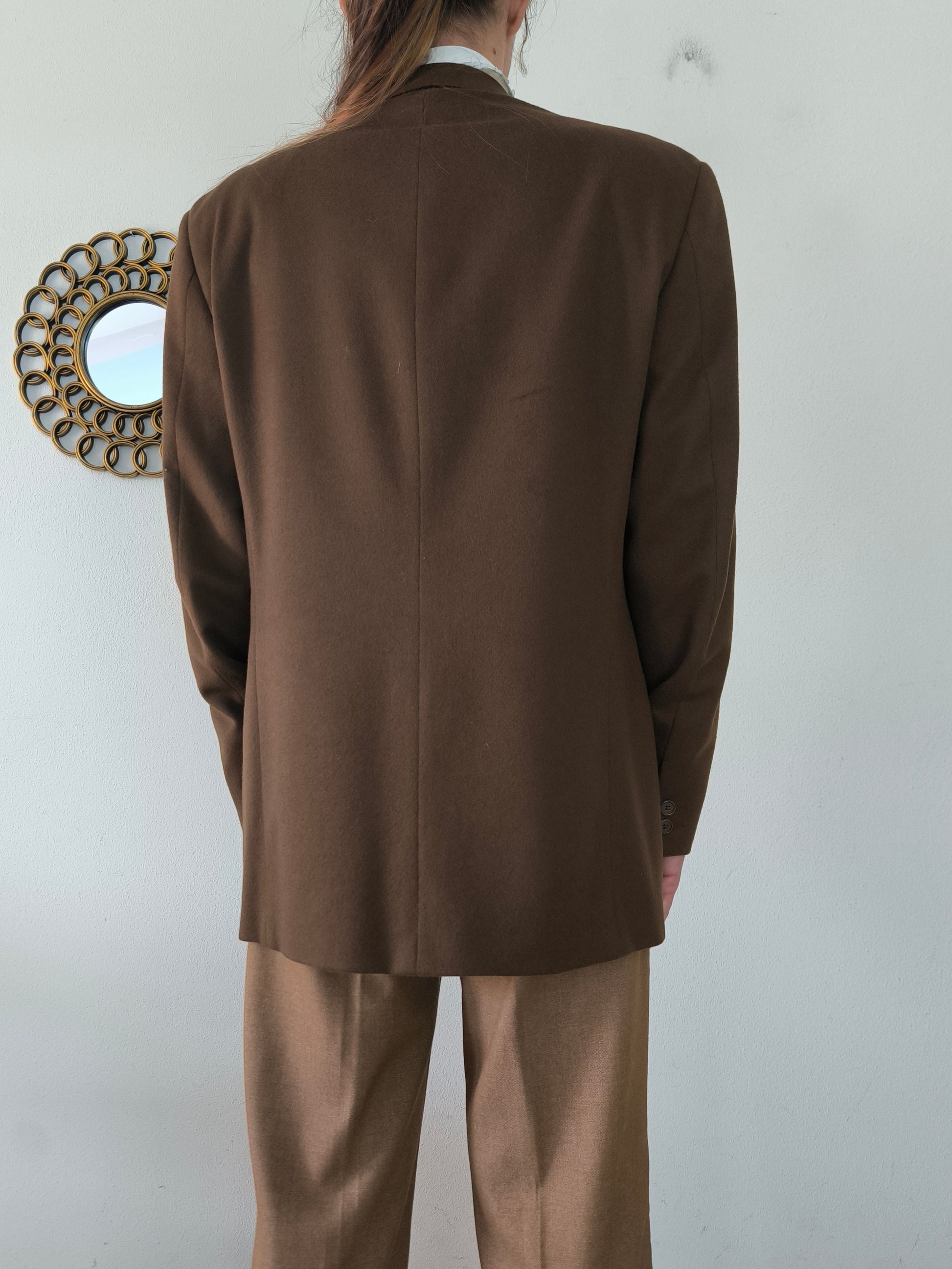 Blazer monopetto due bottoni in misto lana e cashmere, color cioccolato.