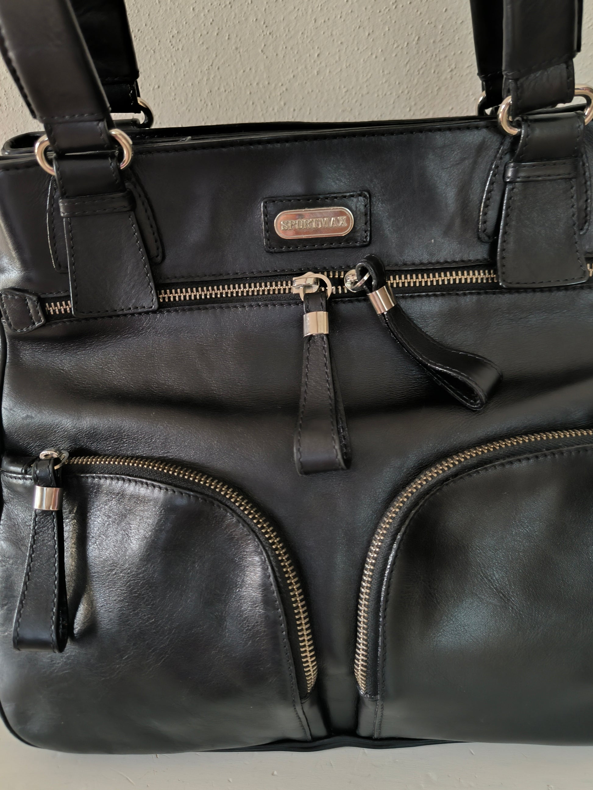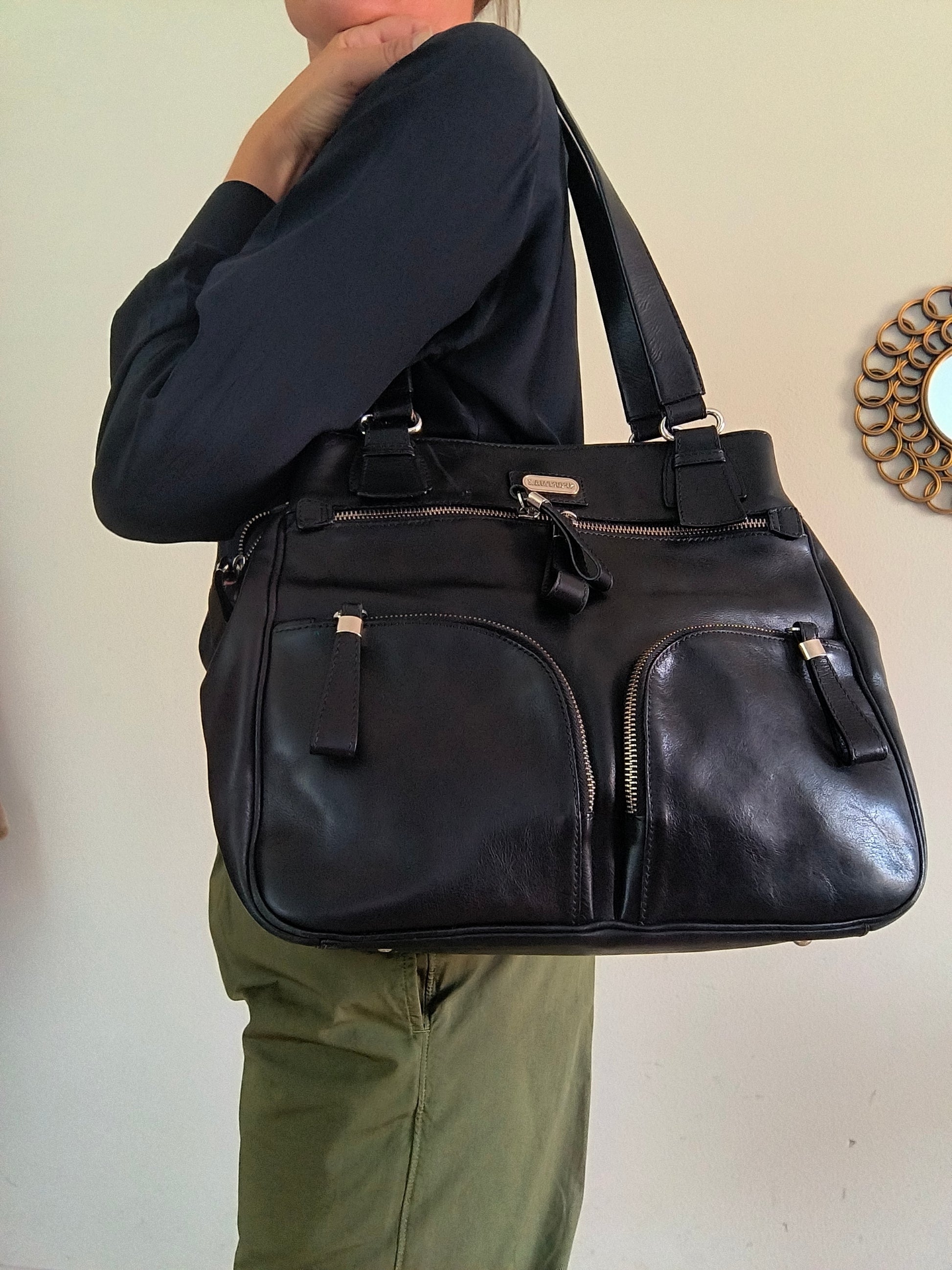 Doppio manico, multi tasche con zip sul davanti, zip per chiusura.