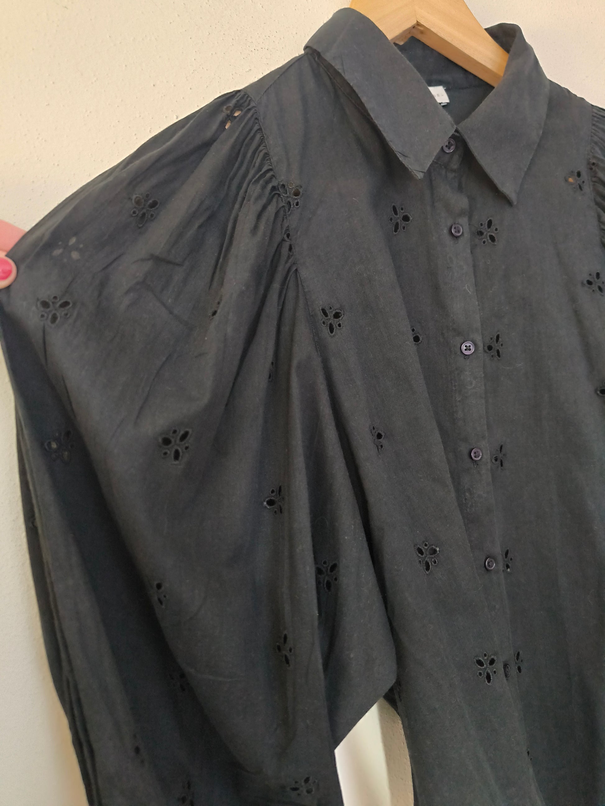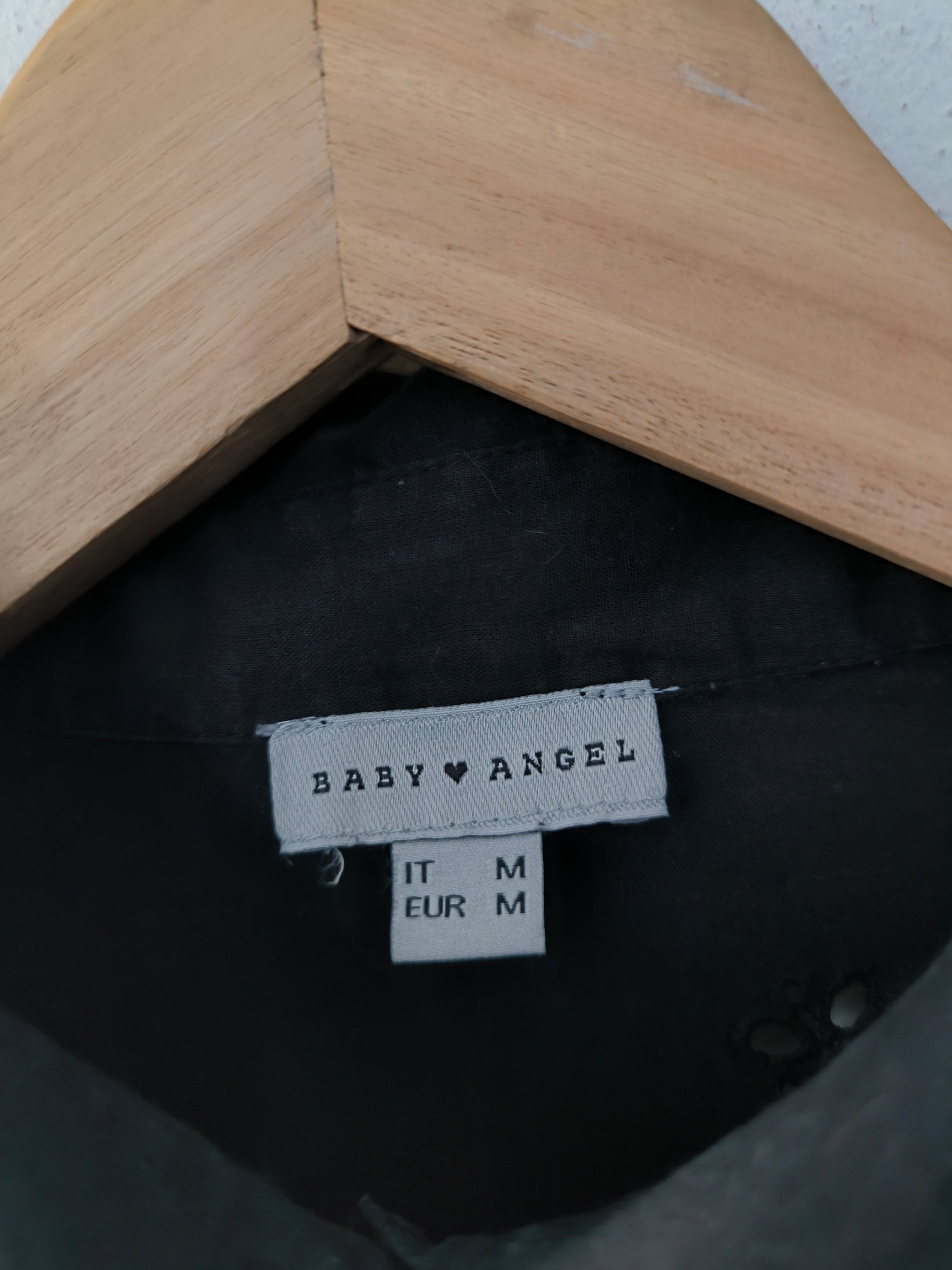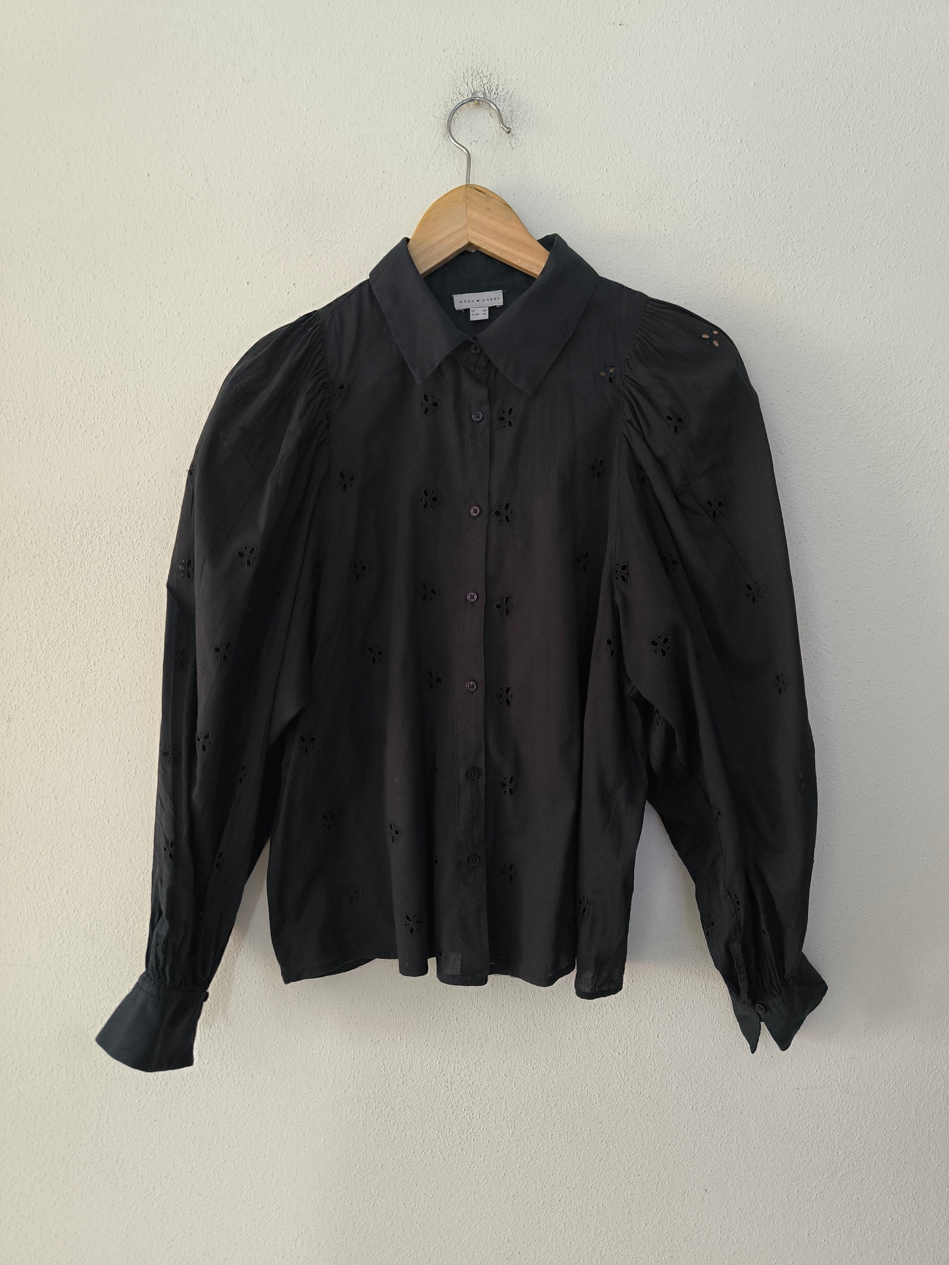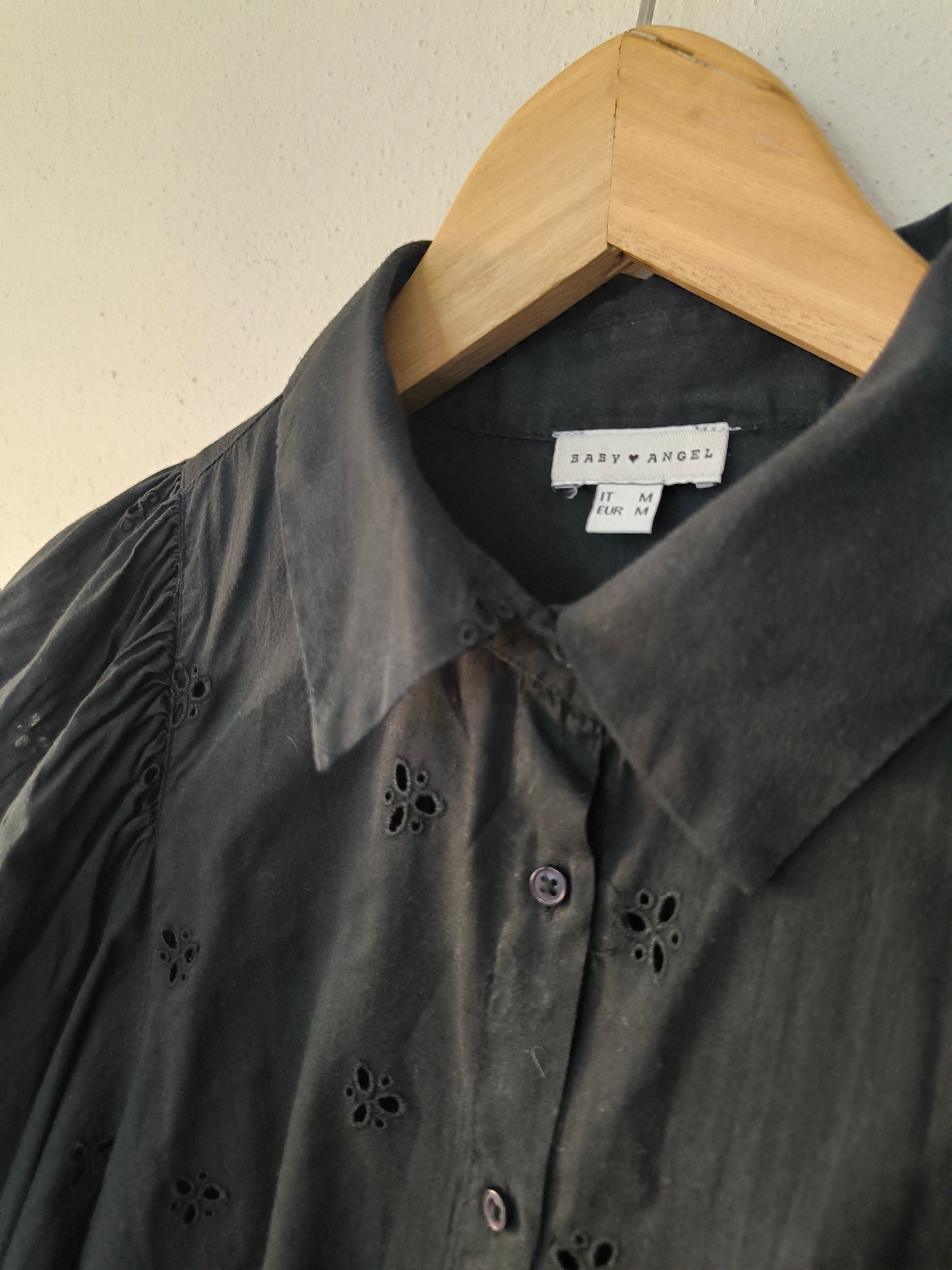 Camicia Baby Angel, in cotone san gallo nera con manica baloon.