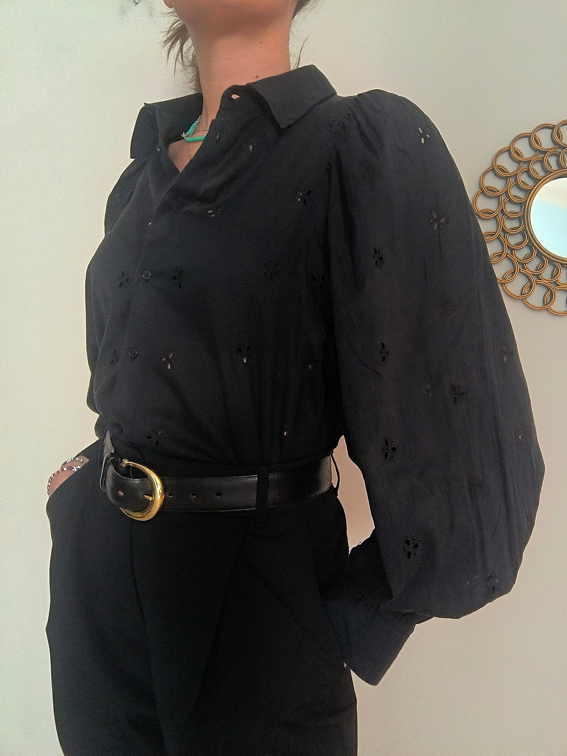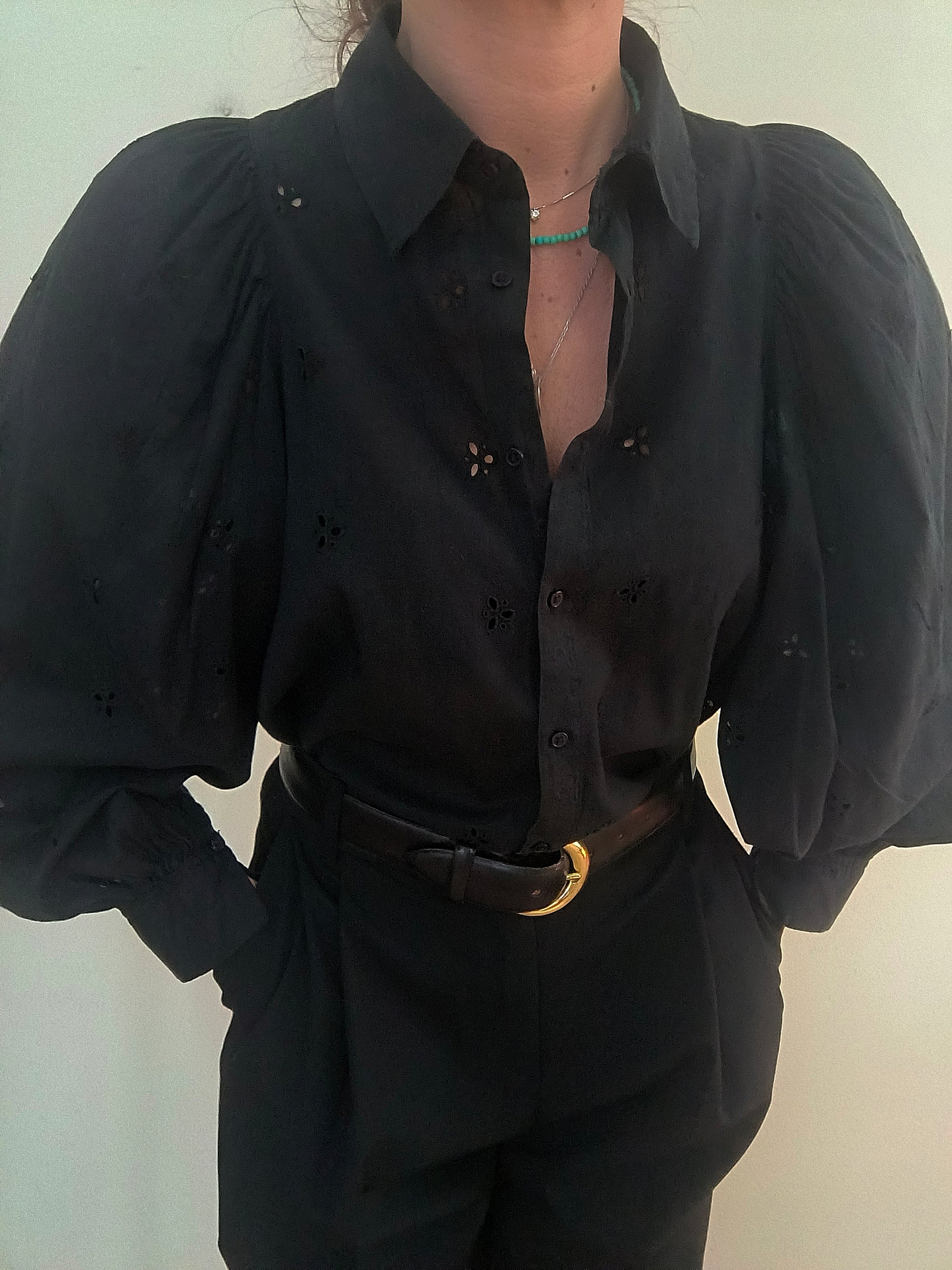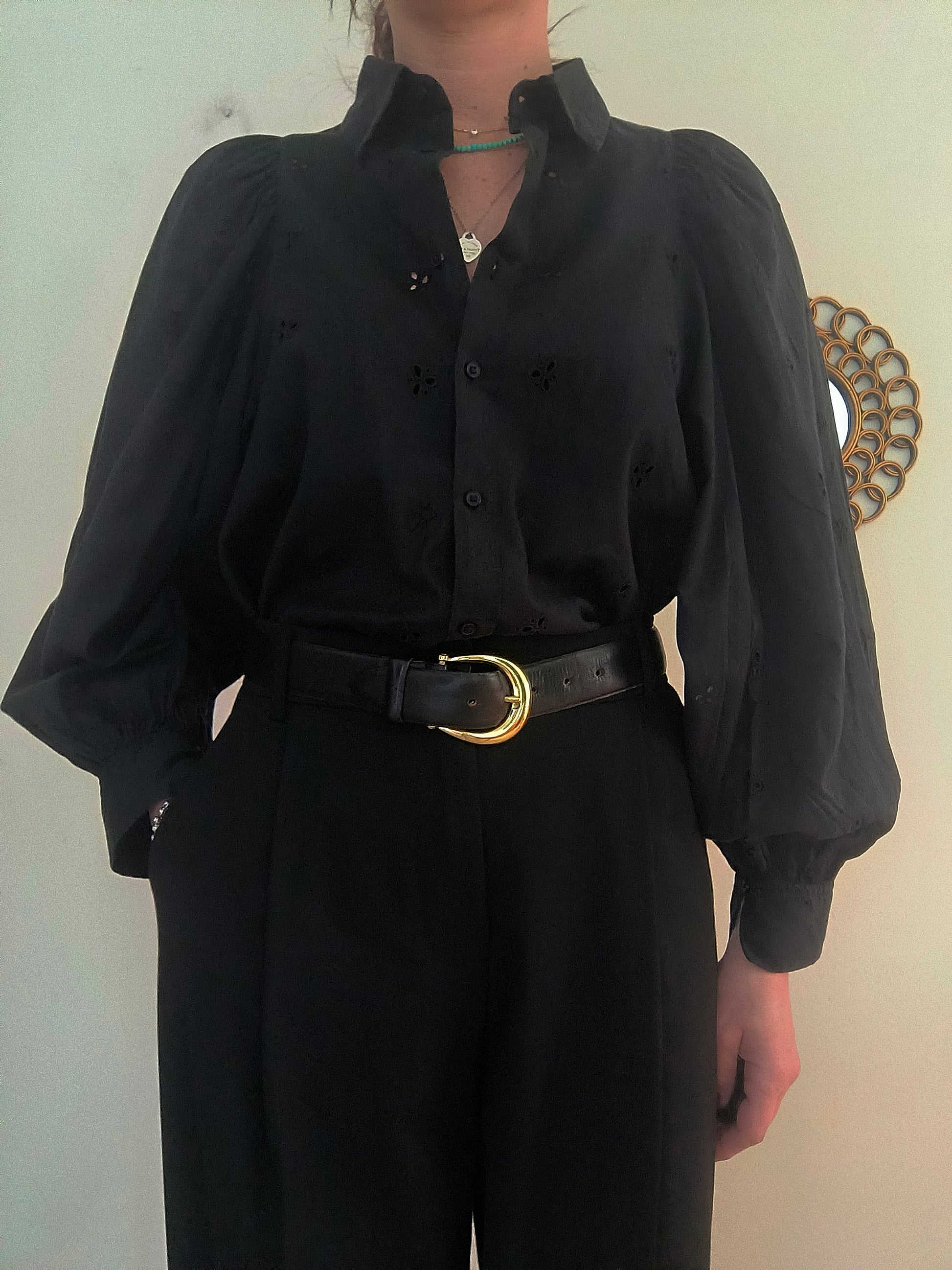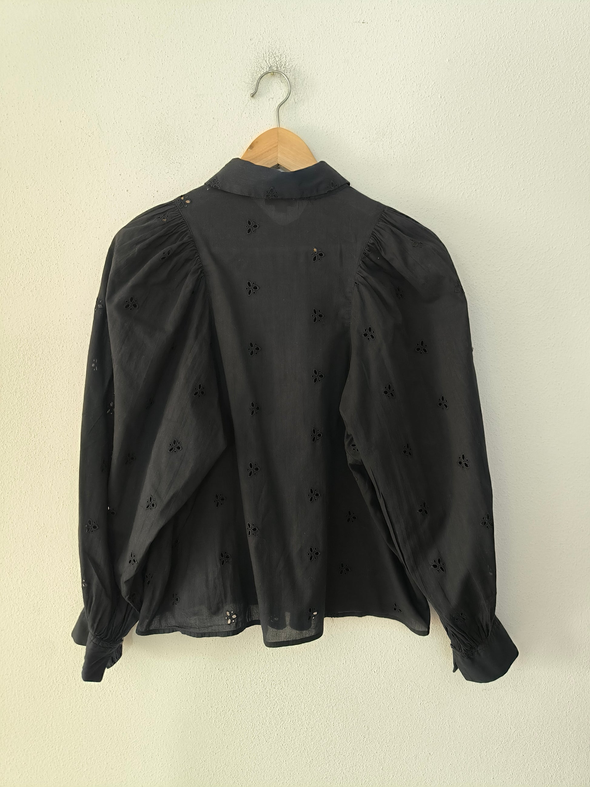 Camicia Baby Angel, in cotone san gallo nera con manica baloon.