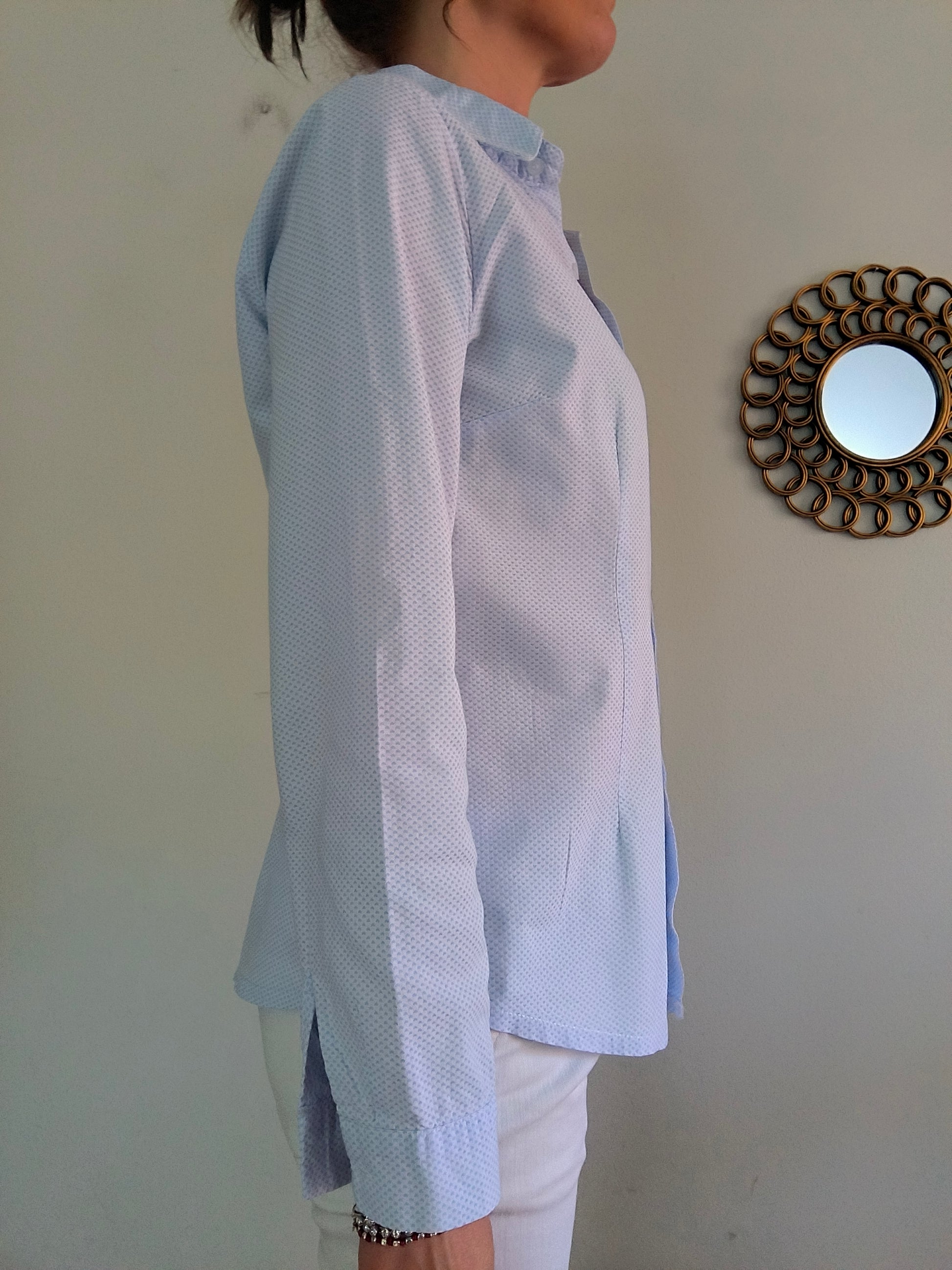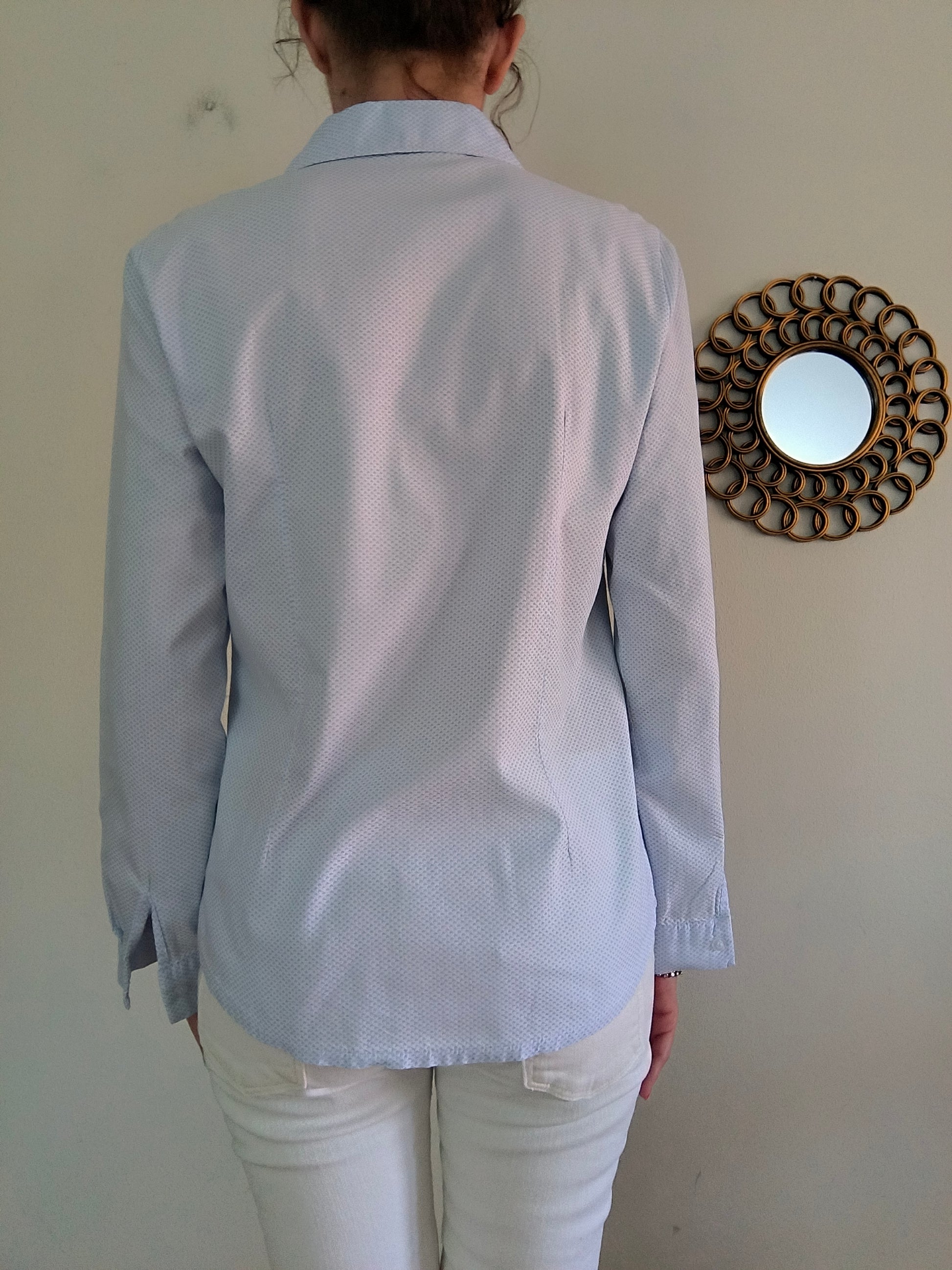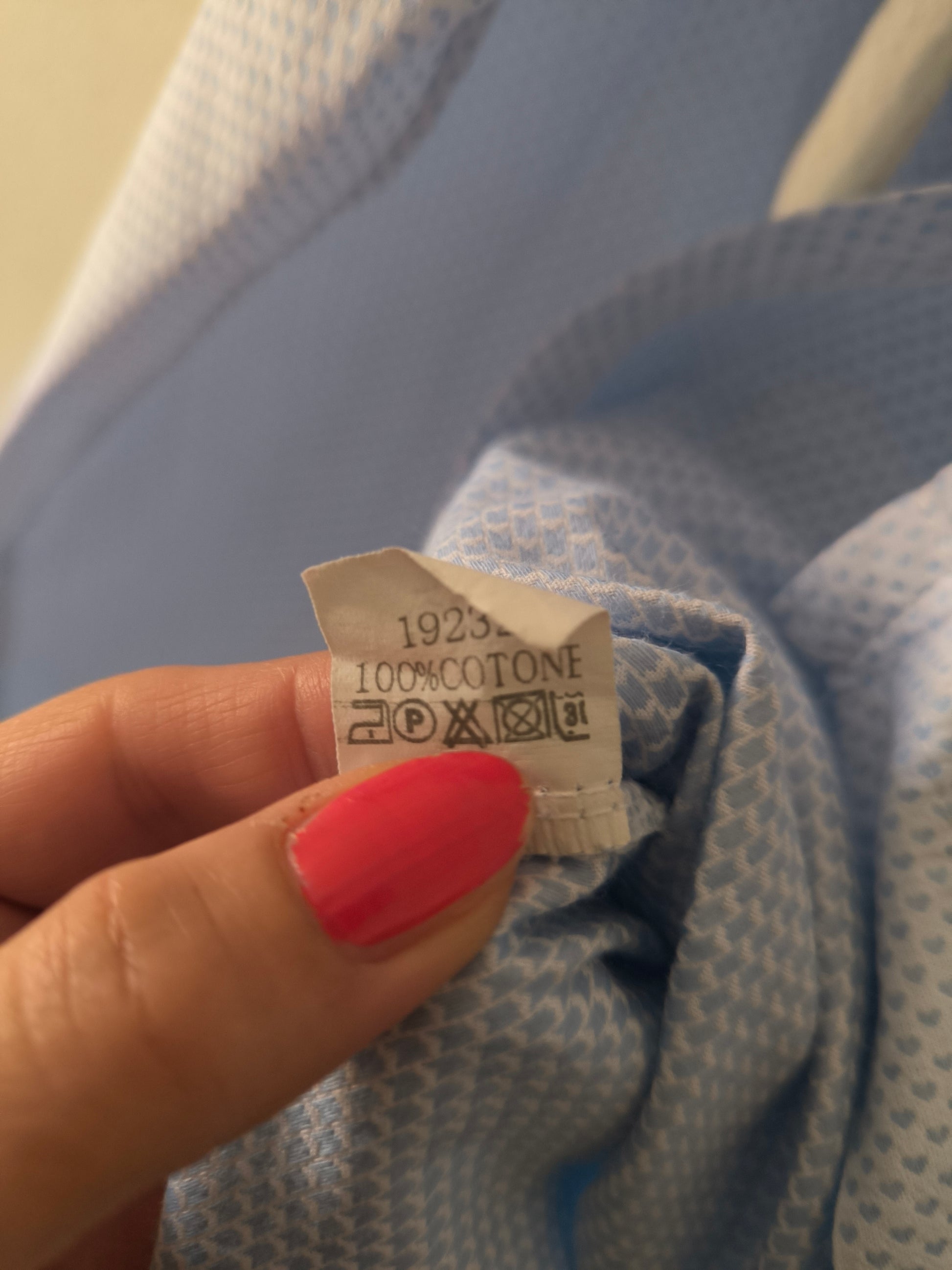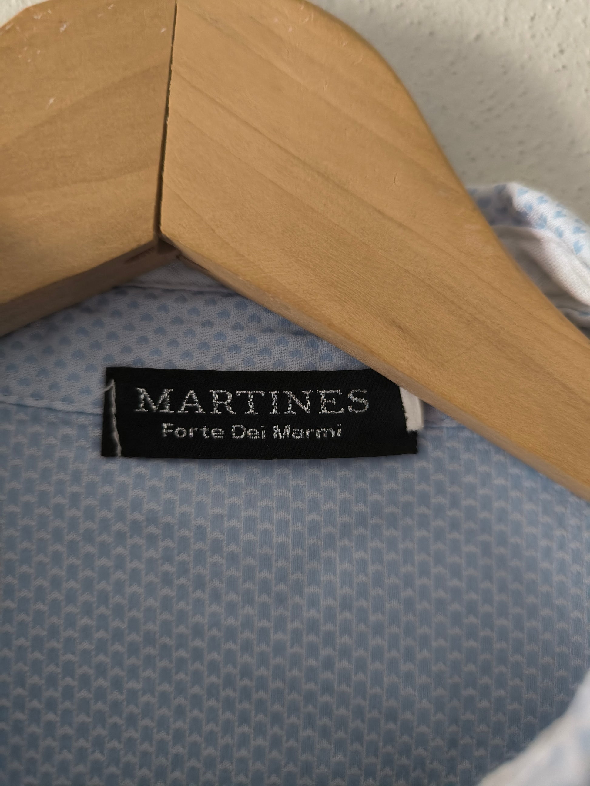 Camicetta azzurra, Martines Forte dei Marmi, femminile, fantasia piccoli cuoricini operati nel filato, con linea leggermente avvitata.