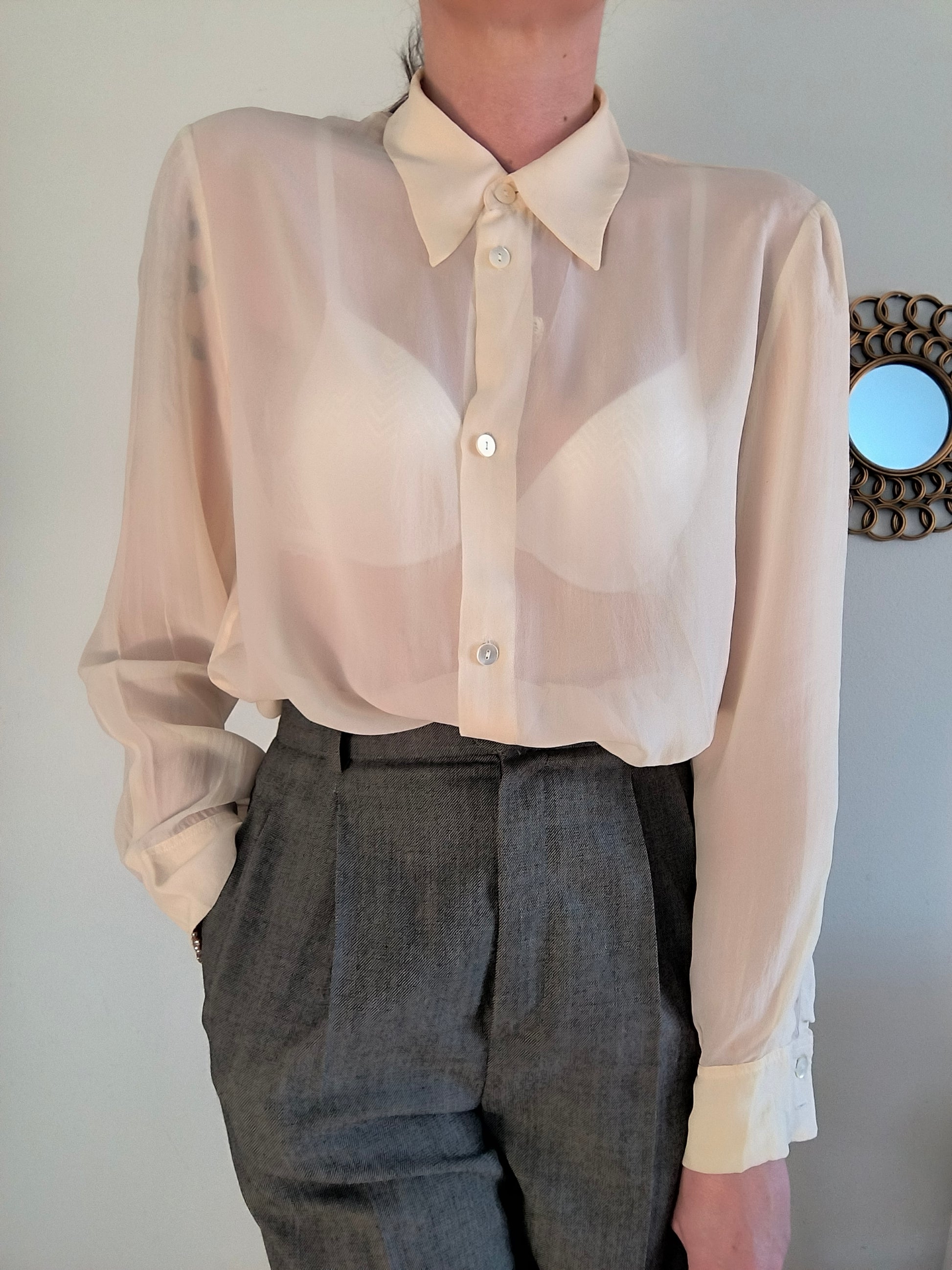 Camicetta M.K EmKay, 100% pura seta color panna, leggerissima, semitrasparente.