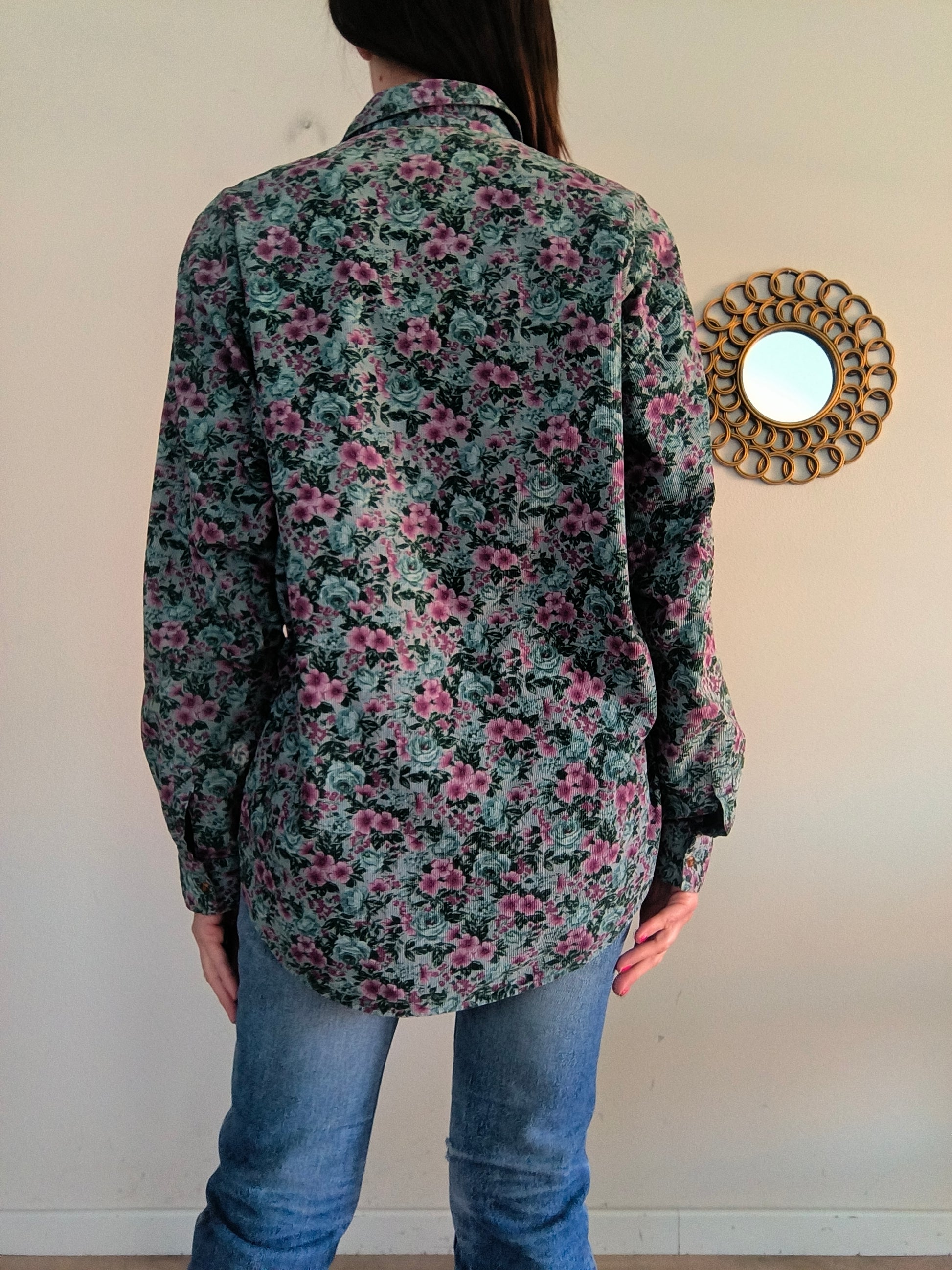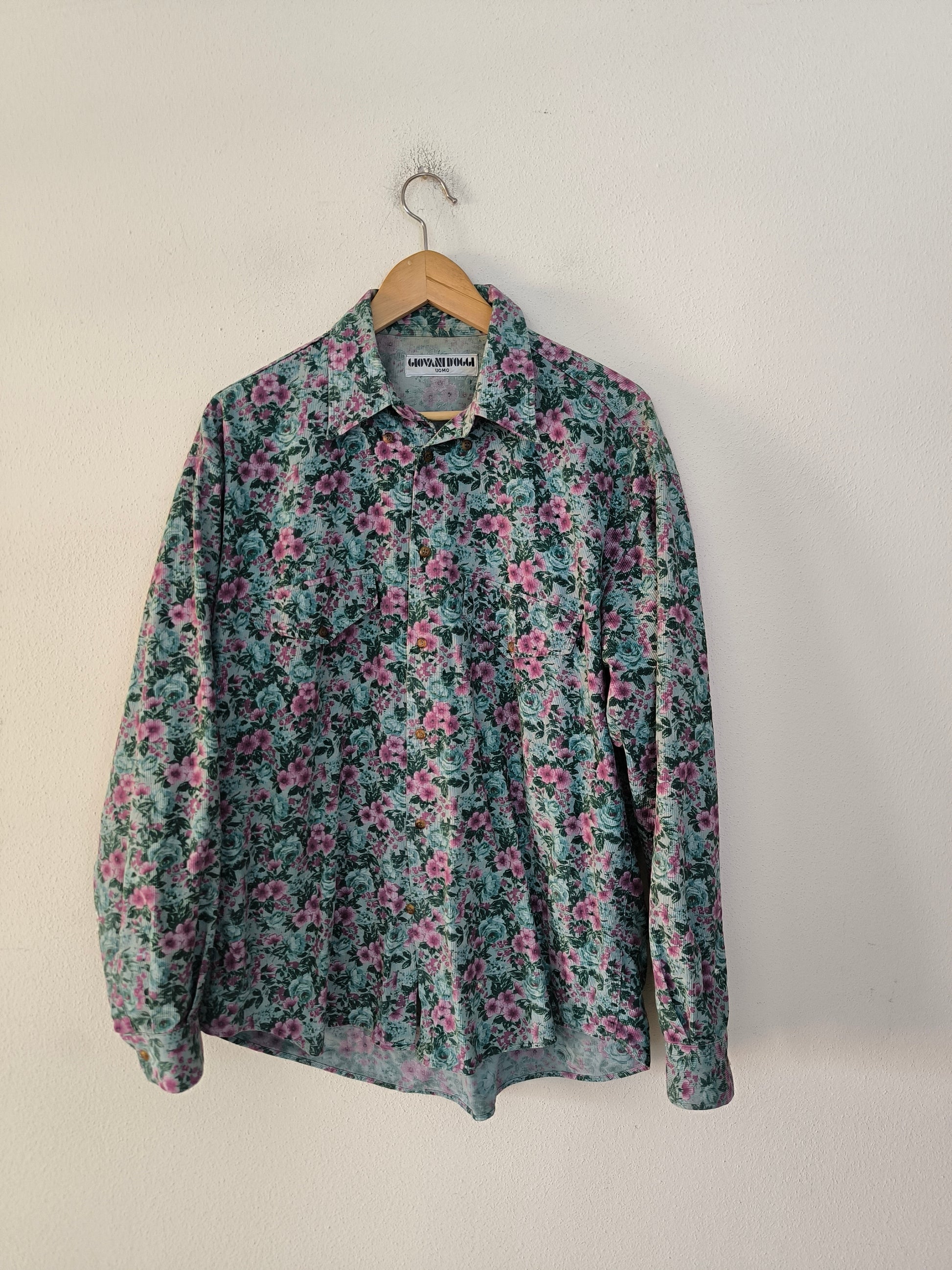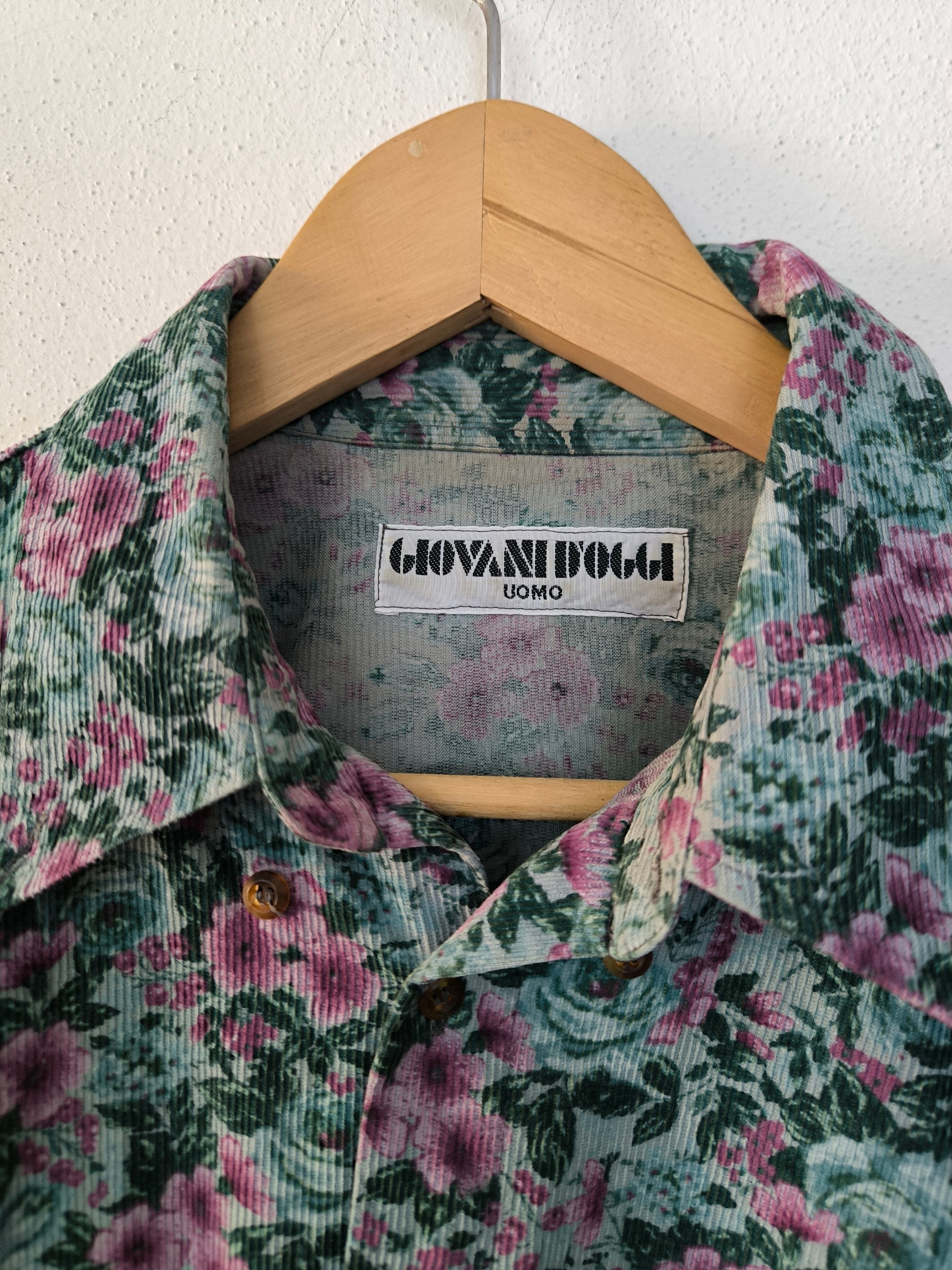 Camicia anni 80, in vellutino a coste fantasia floreale che nasce per lui, Giovani D'oggi Uomo, ma perfetta anche per lei.