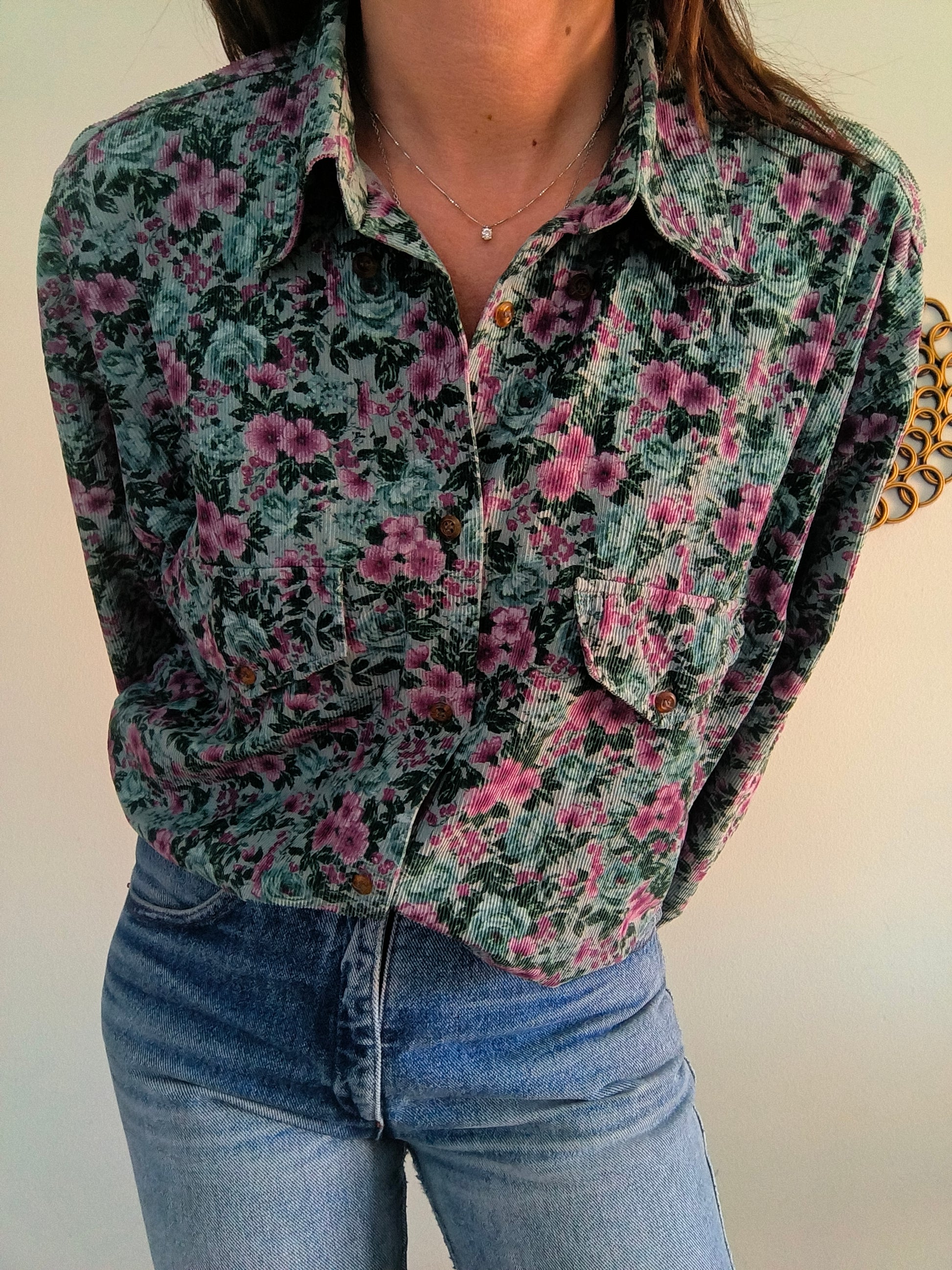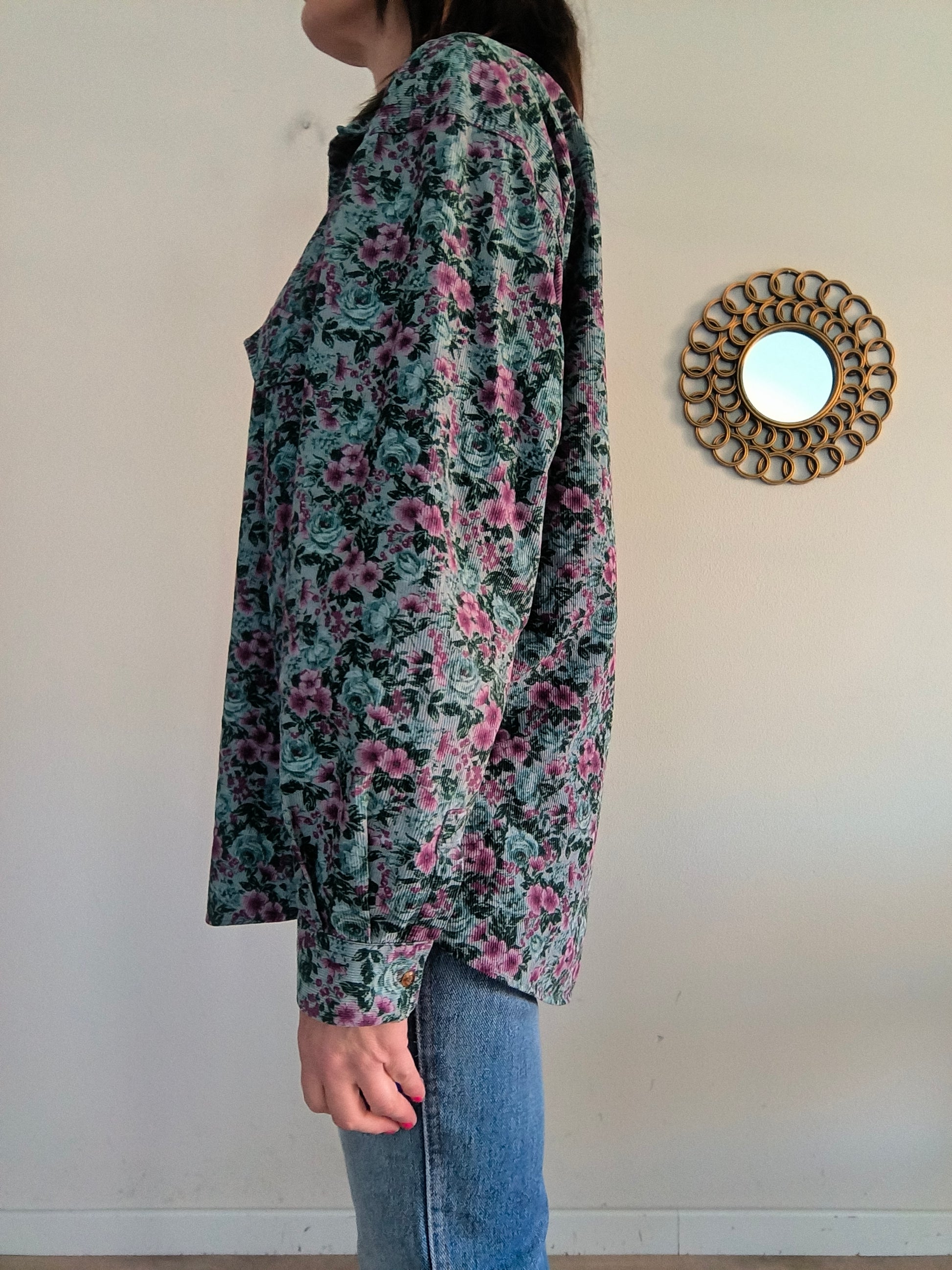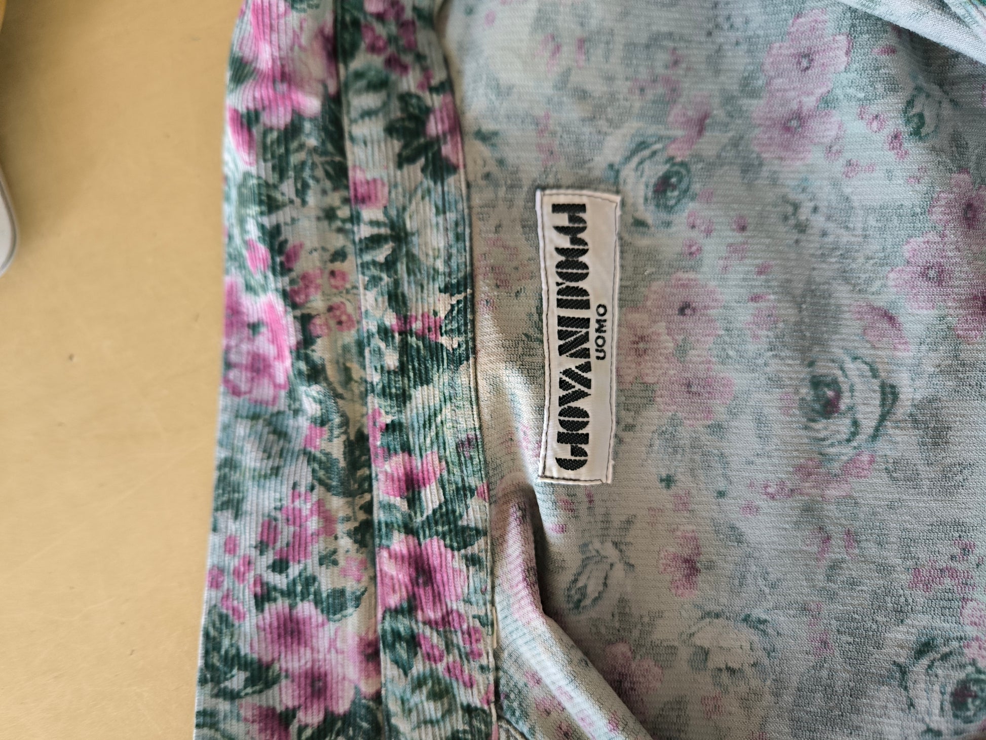 Camicia anni 80, in vellutino a coste fantasia floreale che nasce per lui, Giovani D'oggi Uomo, ma perfetta anche per lei.