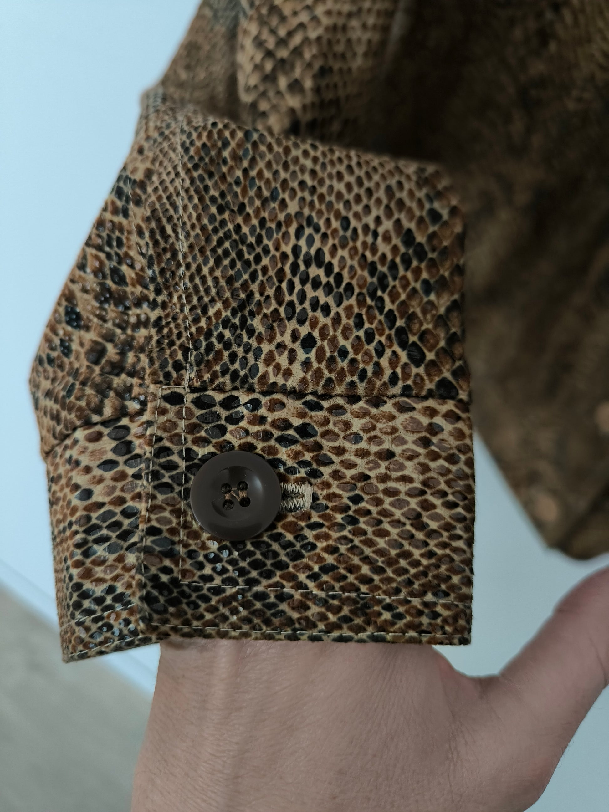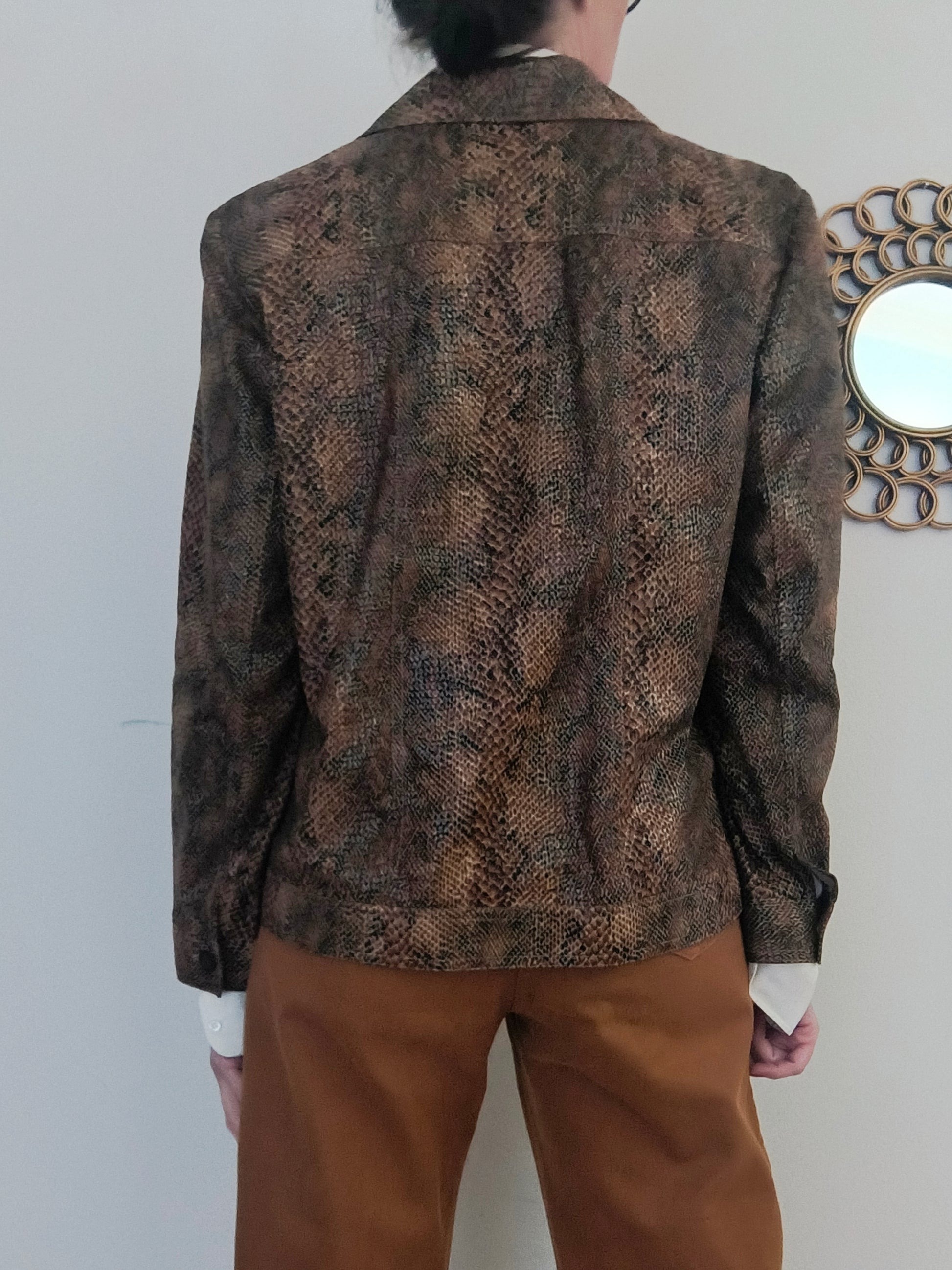 Giacca camicia vintage, in ecosuede fantasia pitonata.