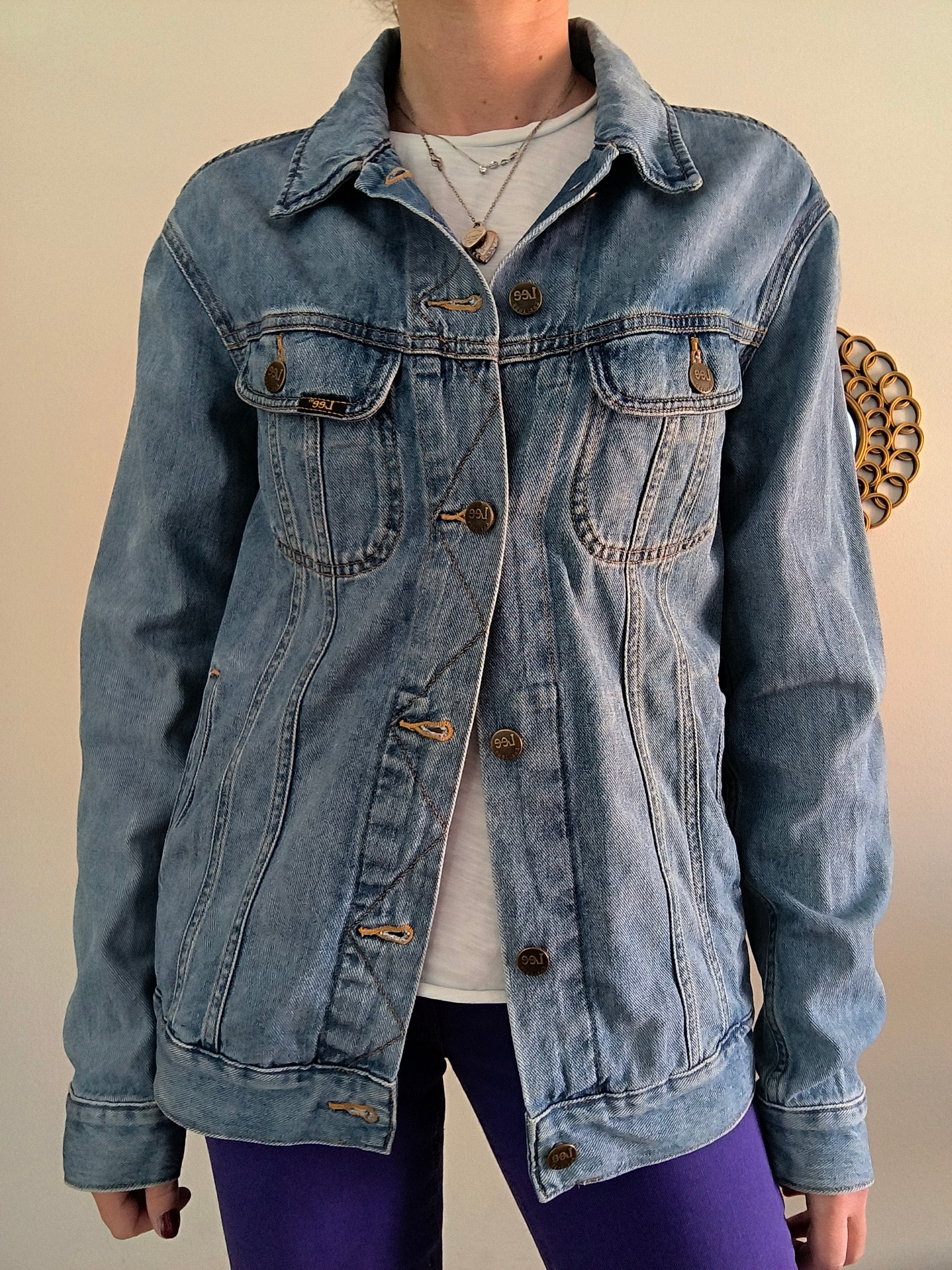 Giacchino Lee in jeans stonewashed, azzurro, tg S con fit over.