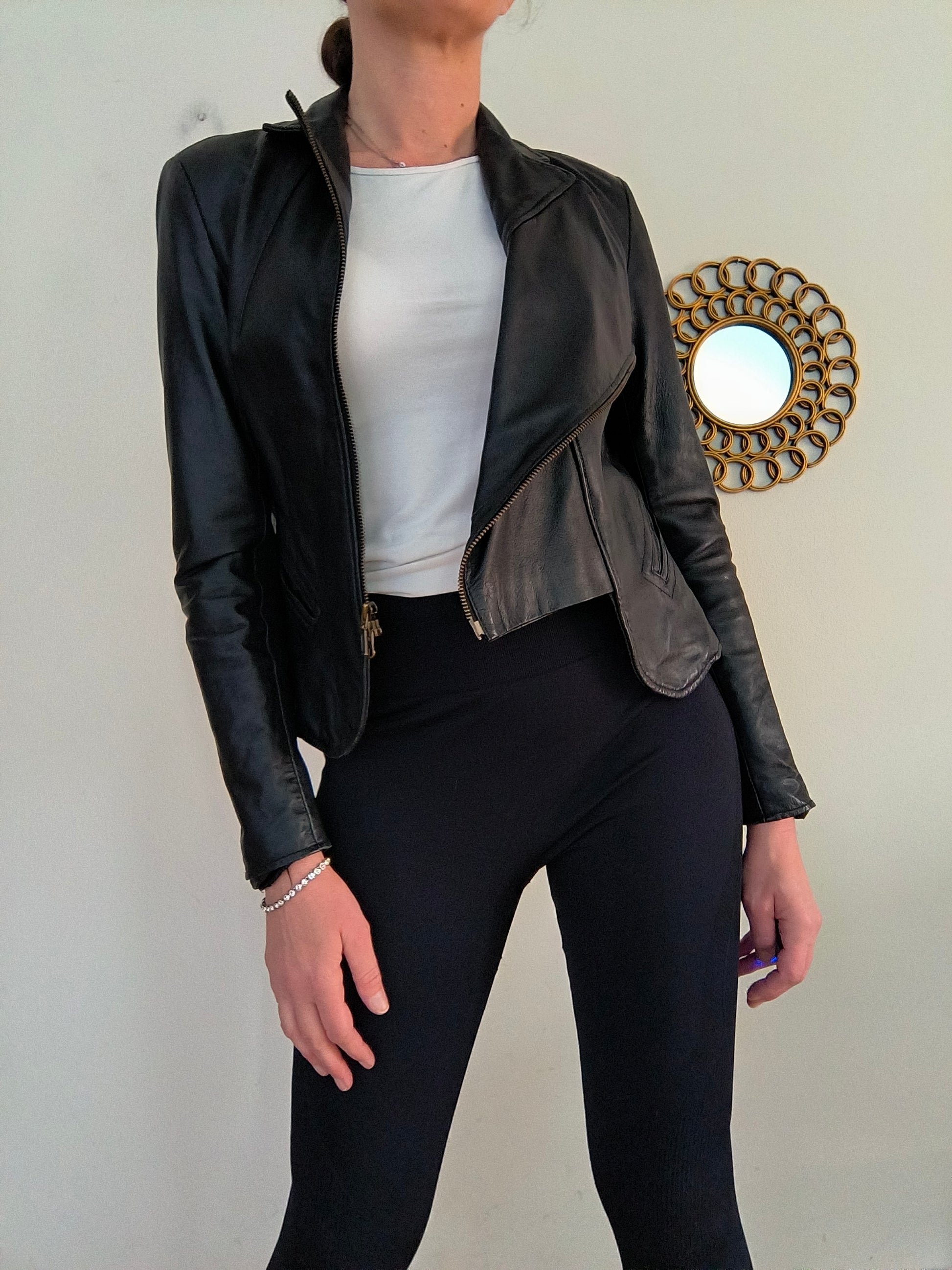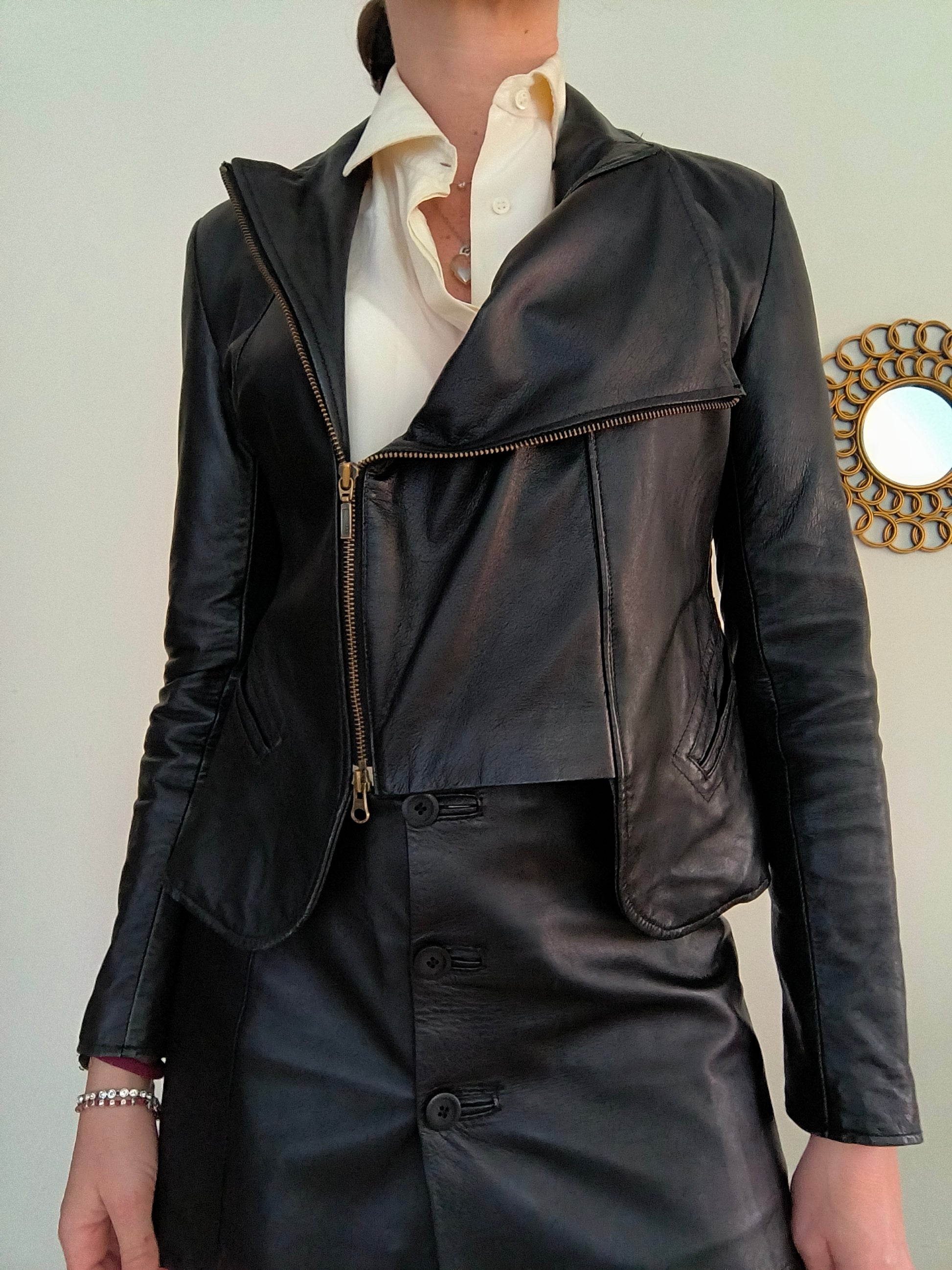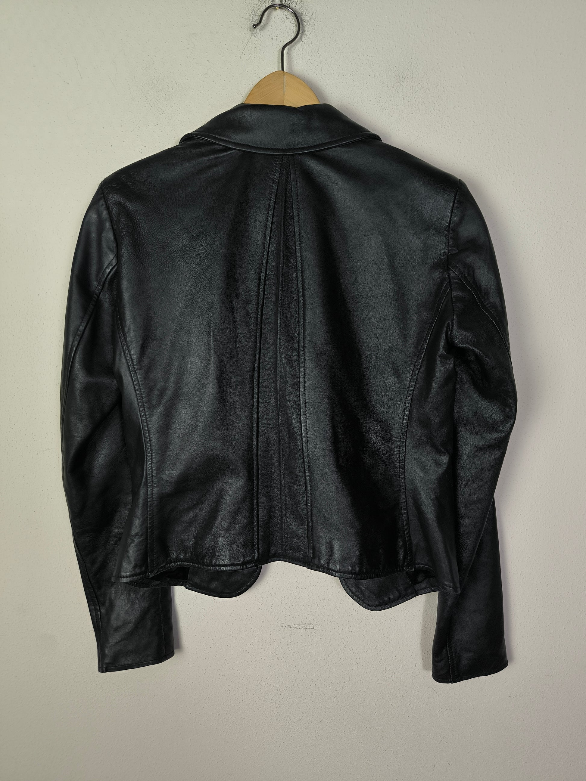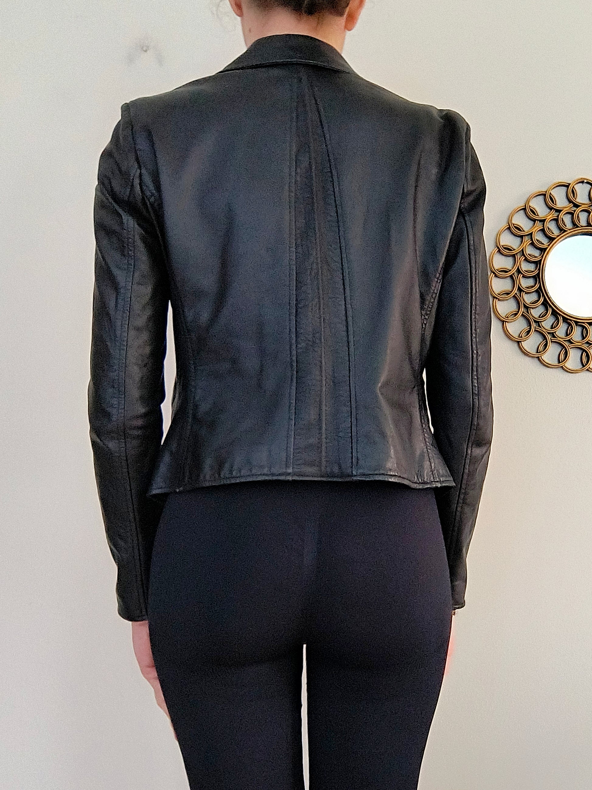 Giacchino in vera pelle nero, chiusura con zip modello chiodo.
