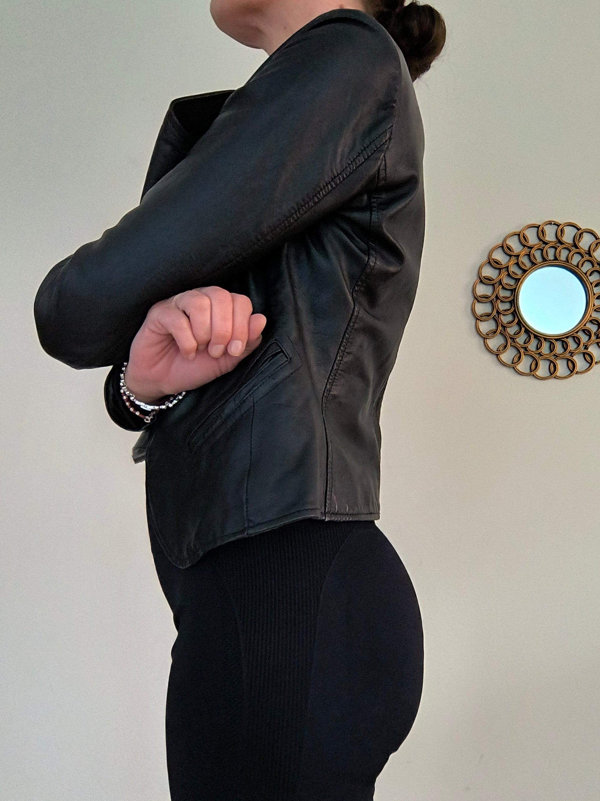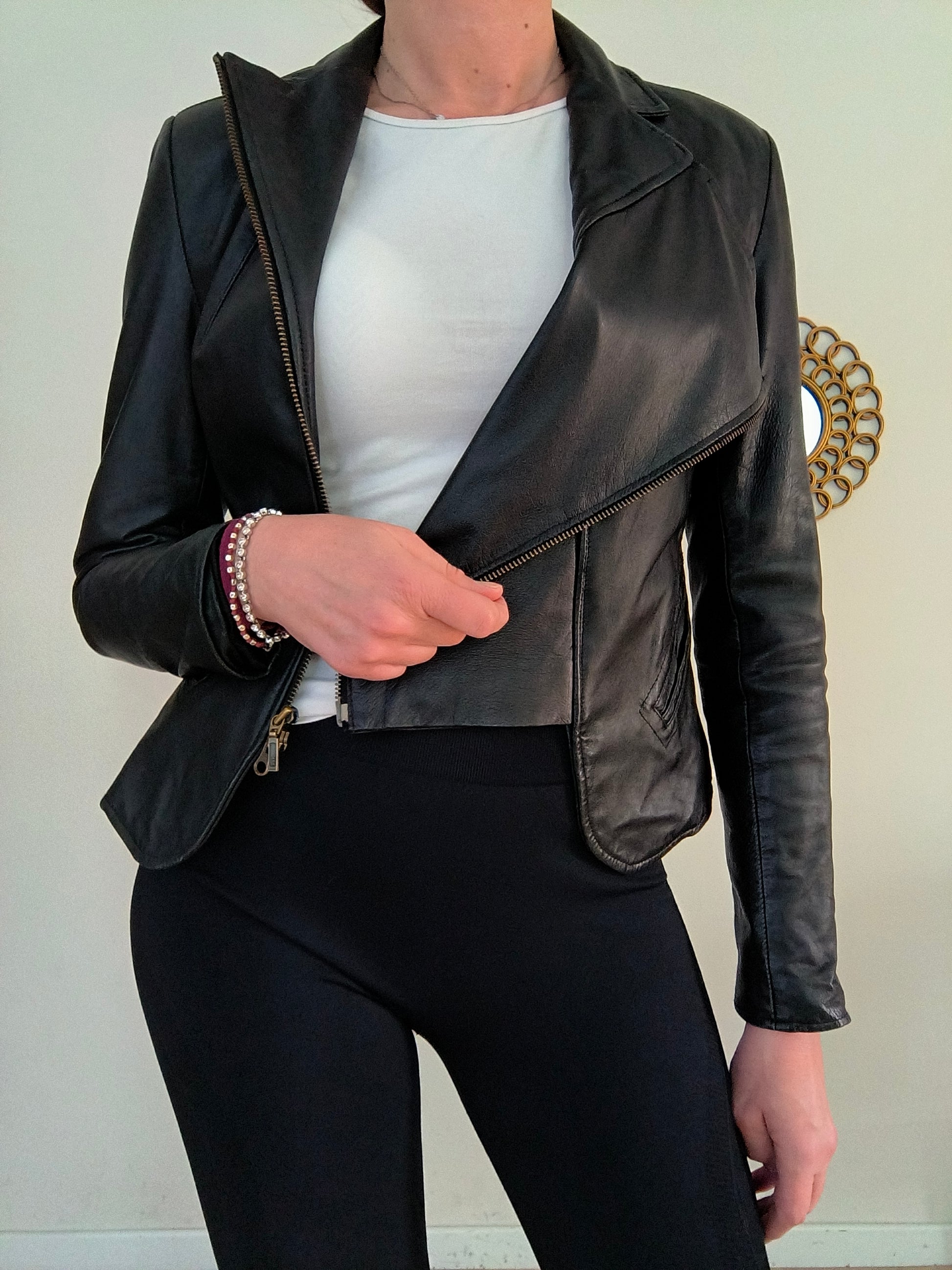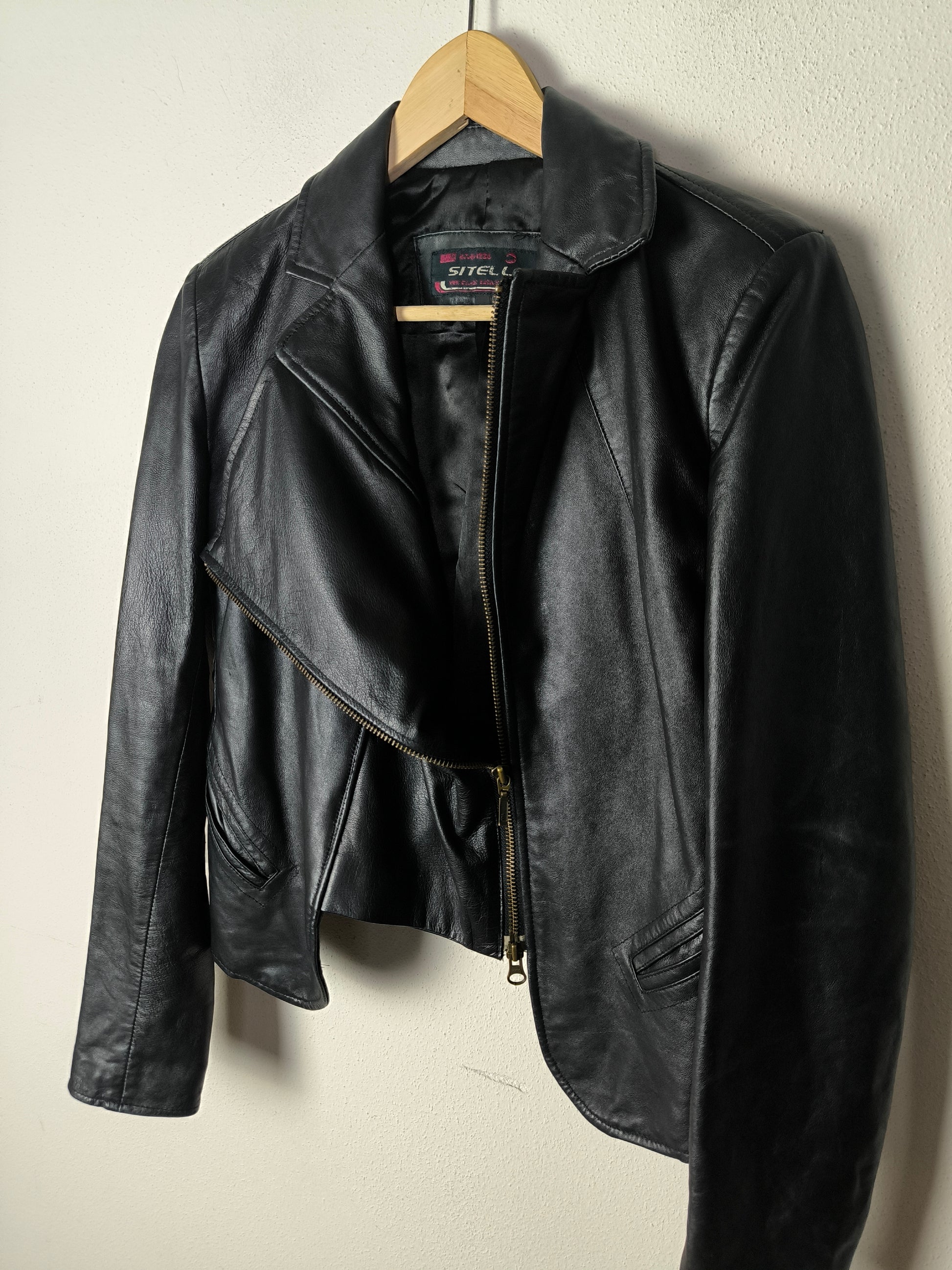 Giacchino in vera pelle nero, chiusura con zip modello chiodo.