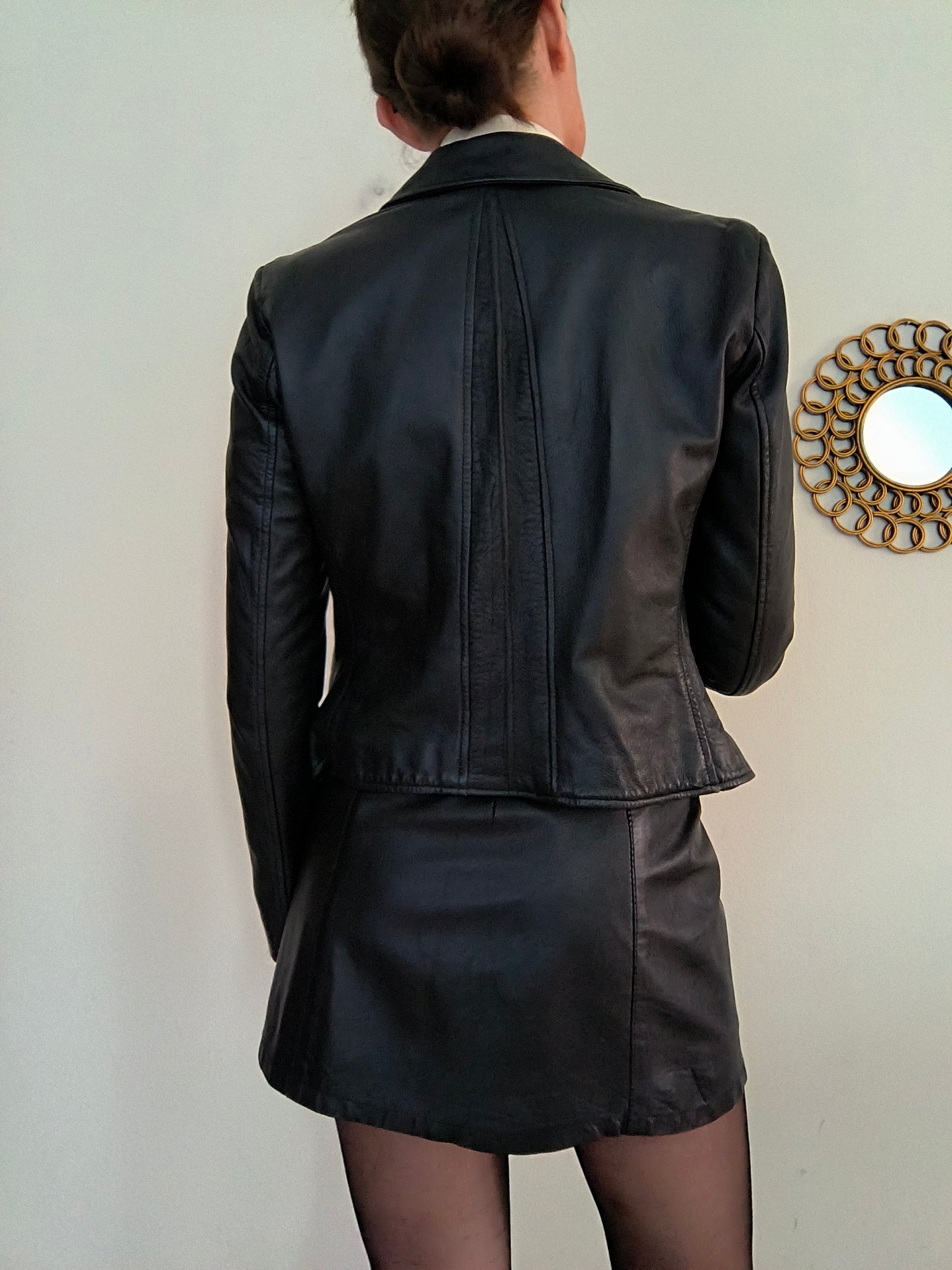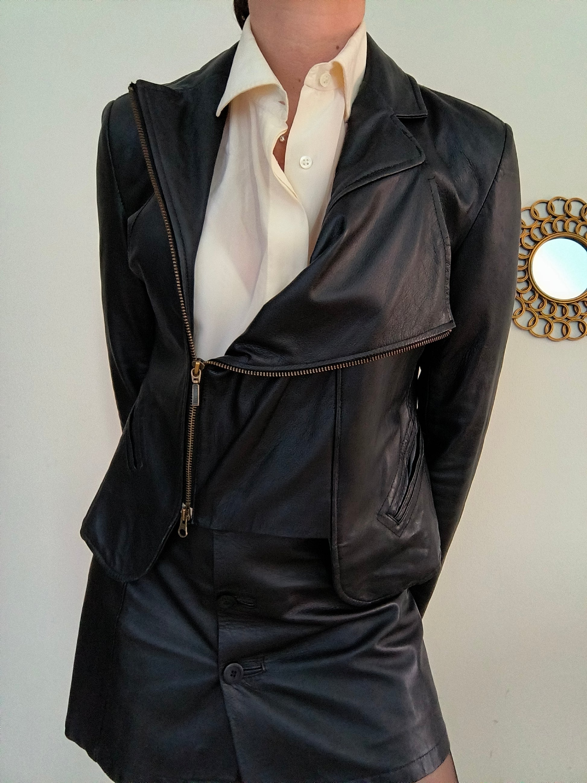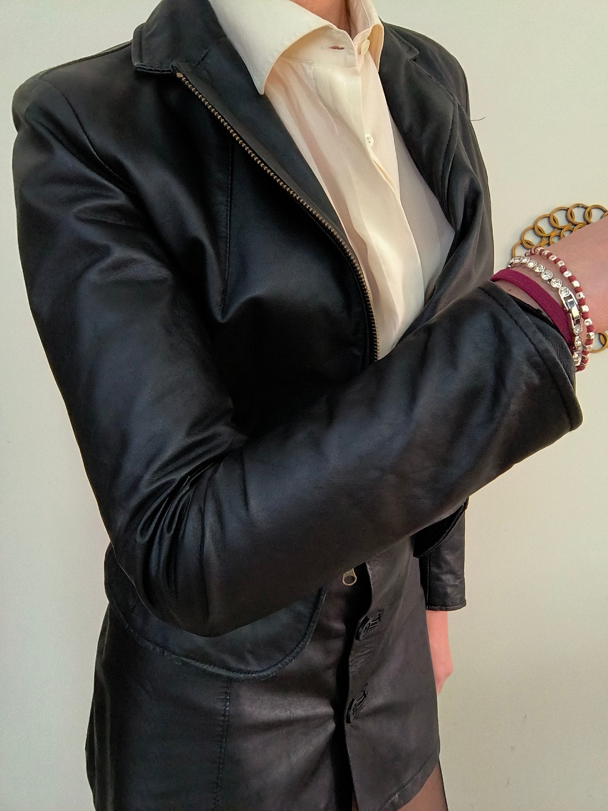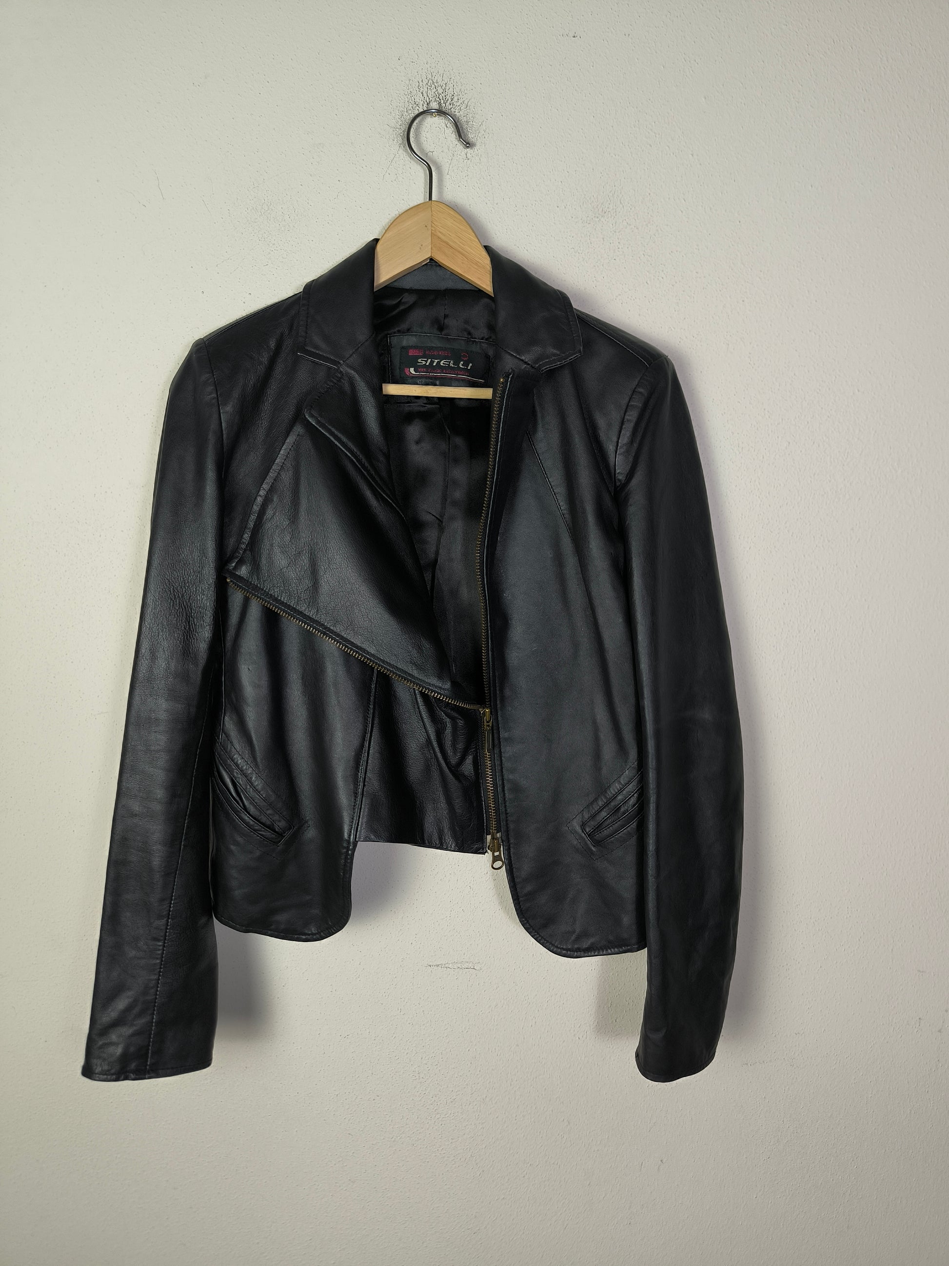 Giacchino in vera pelle nero, chiusura con zip modello chiodo.