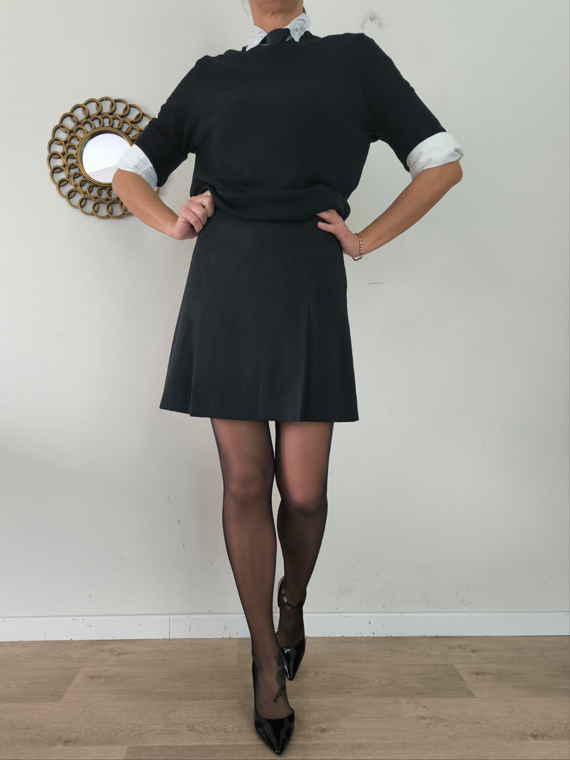 Gonnellina sartoriale box pleated, in lana, con interno foderato, doppia pences sia sul davanti che sul dietro per una bellissima vestibilità.