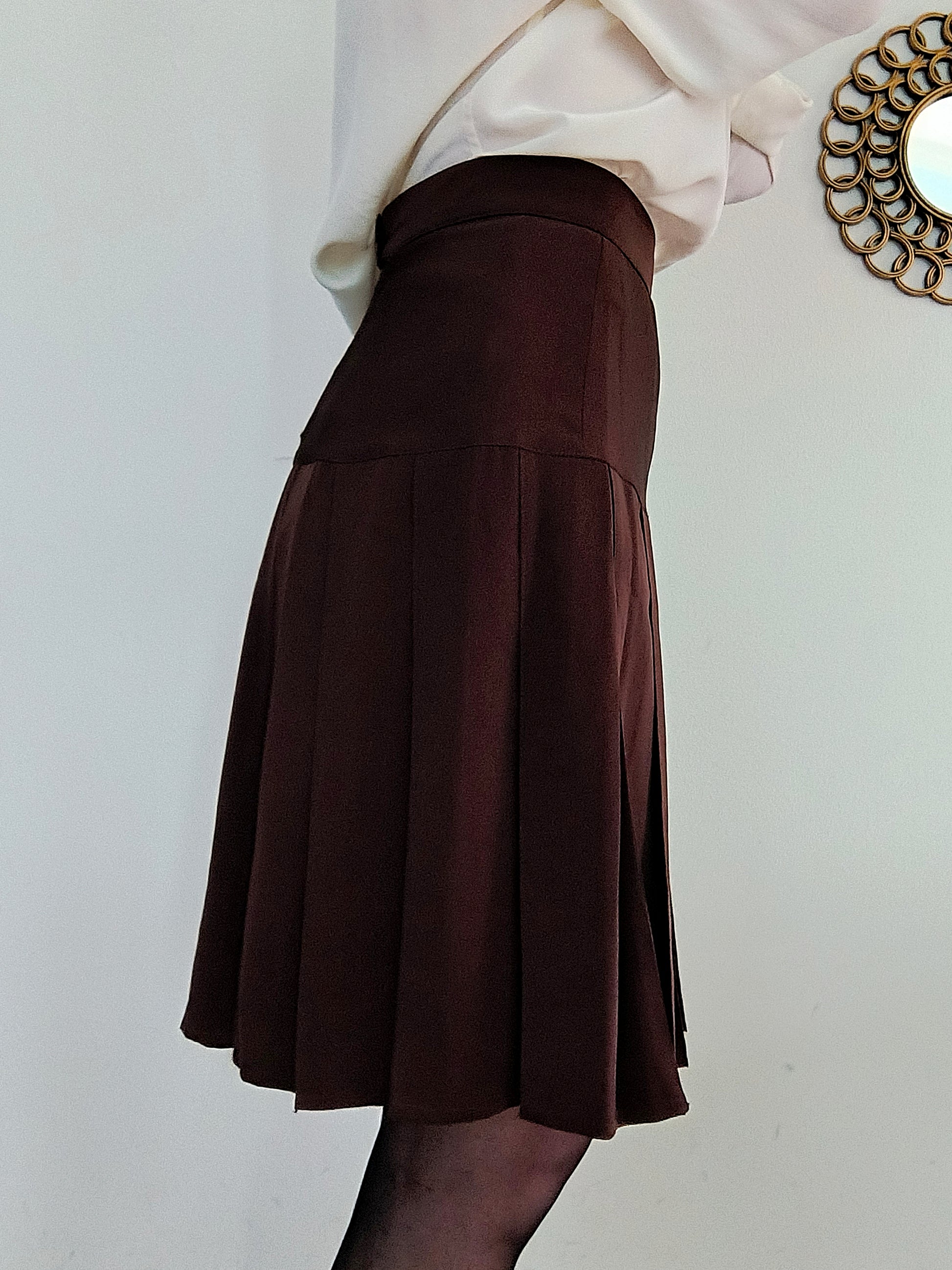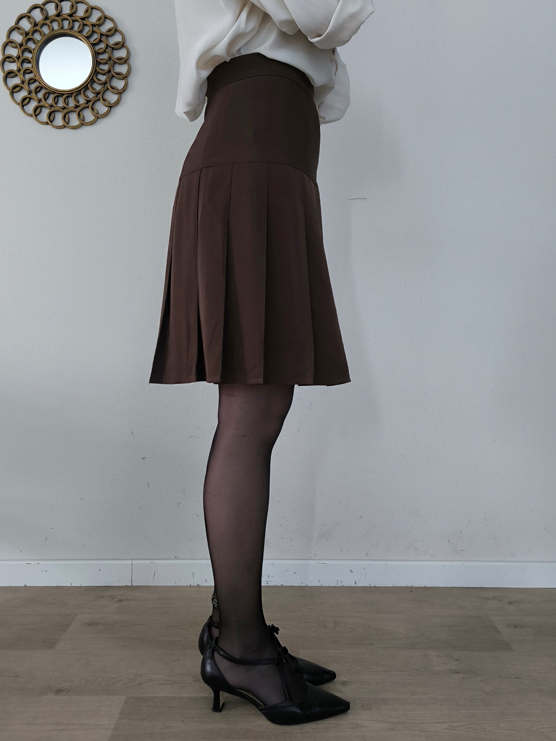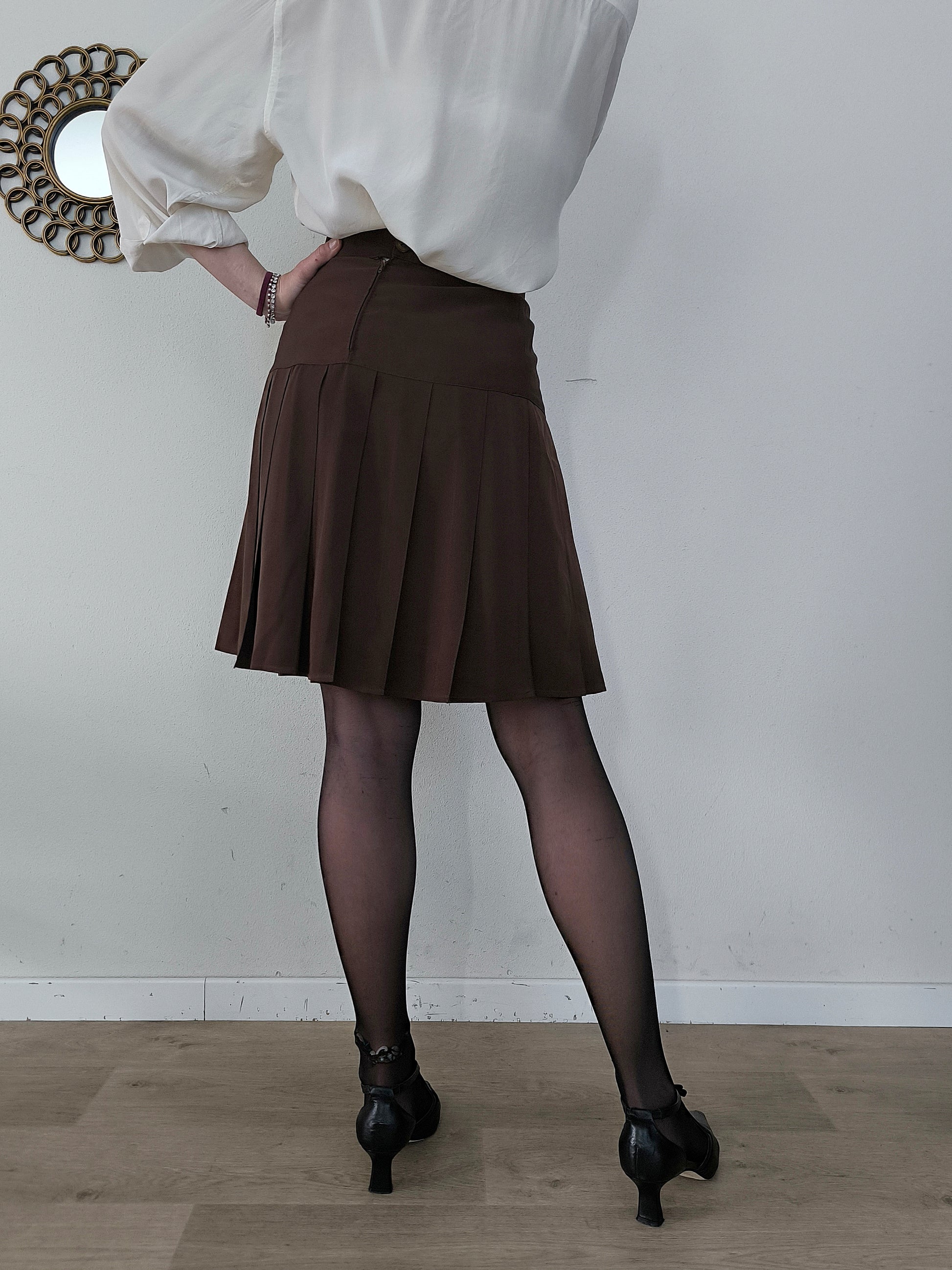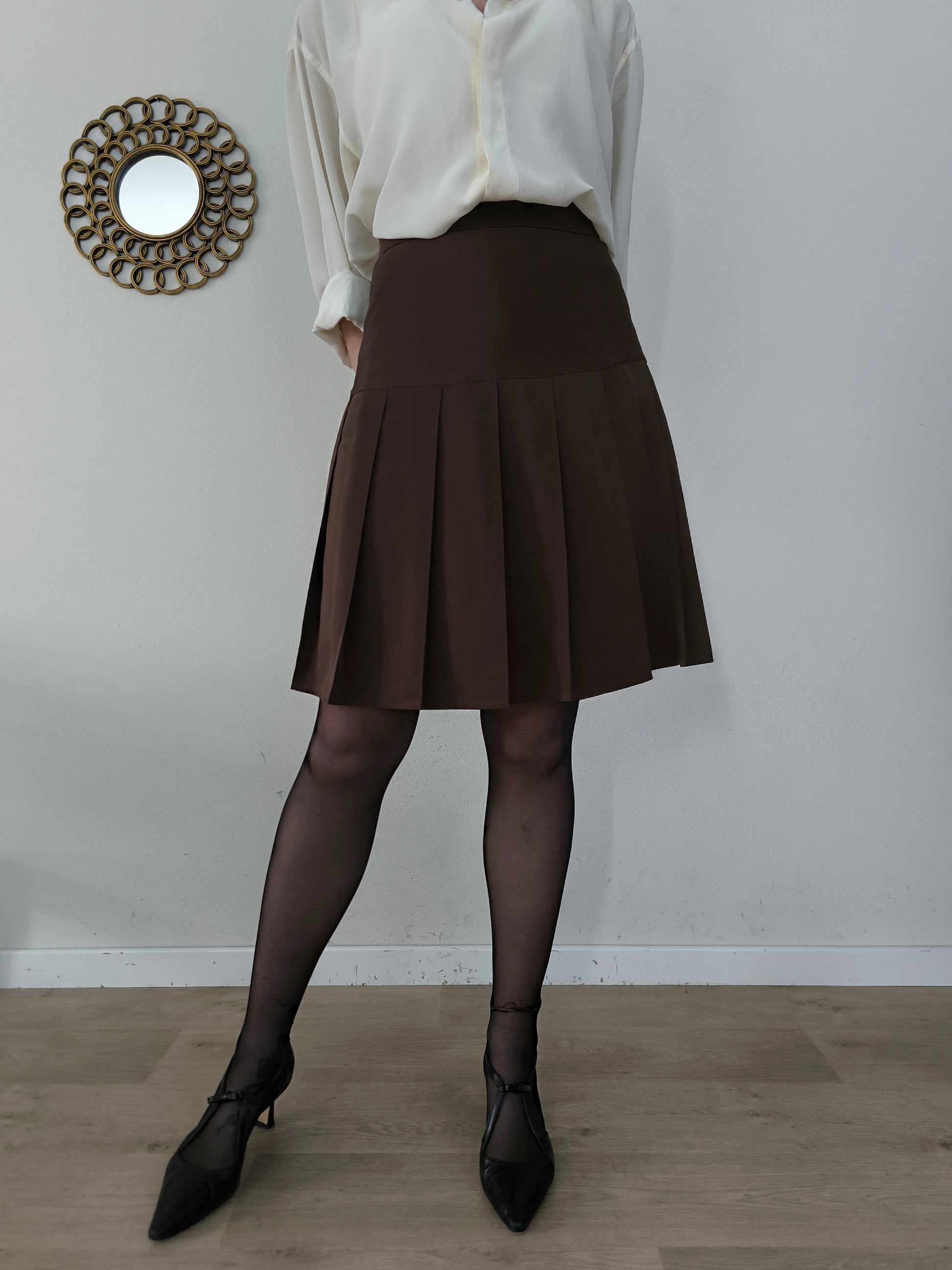 Gonnellina vintage Mirta, colore marrone, 100% lana pesantezza frescolana, vita alta, foderata.