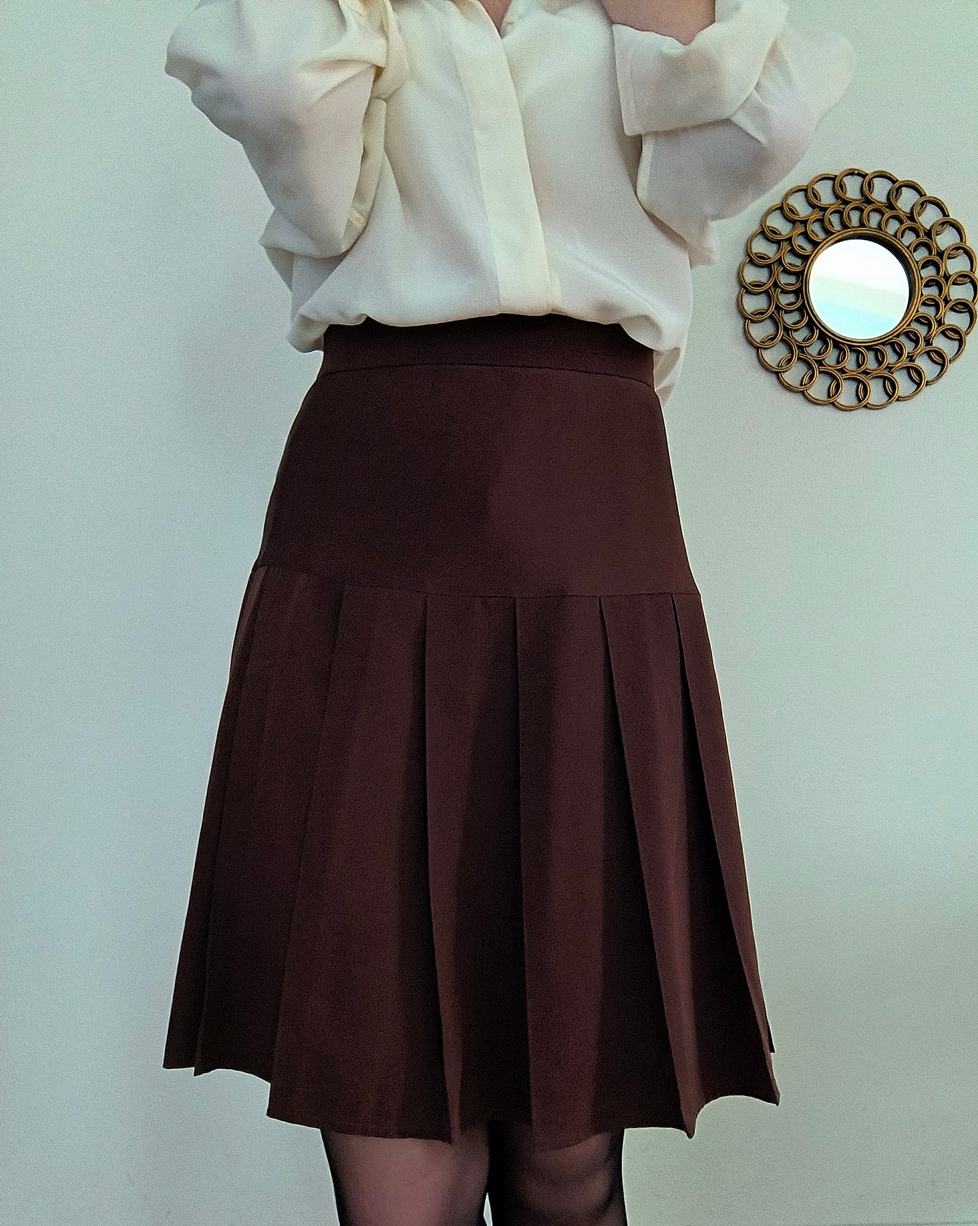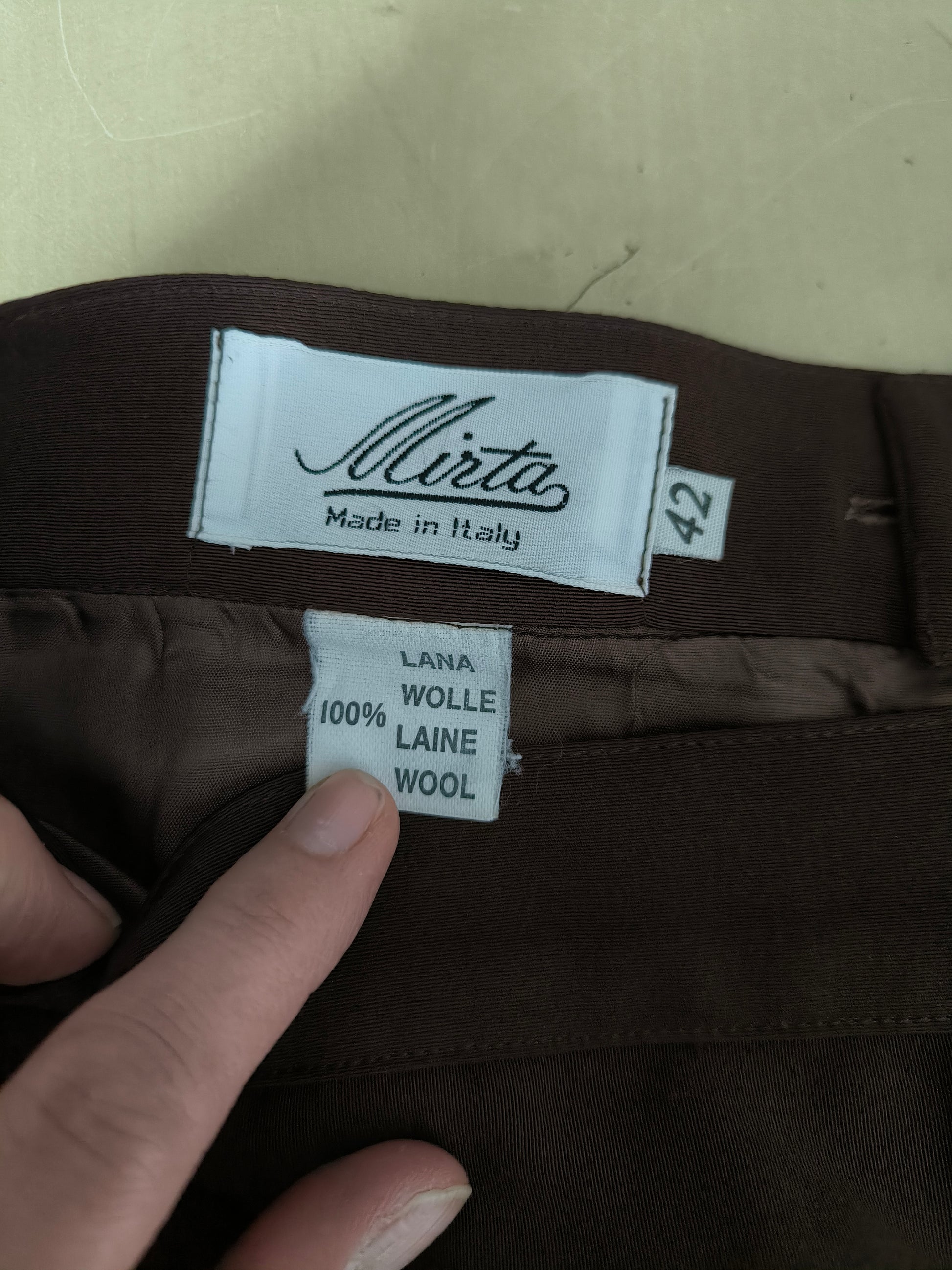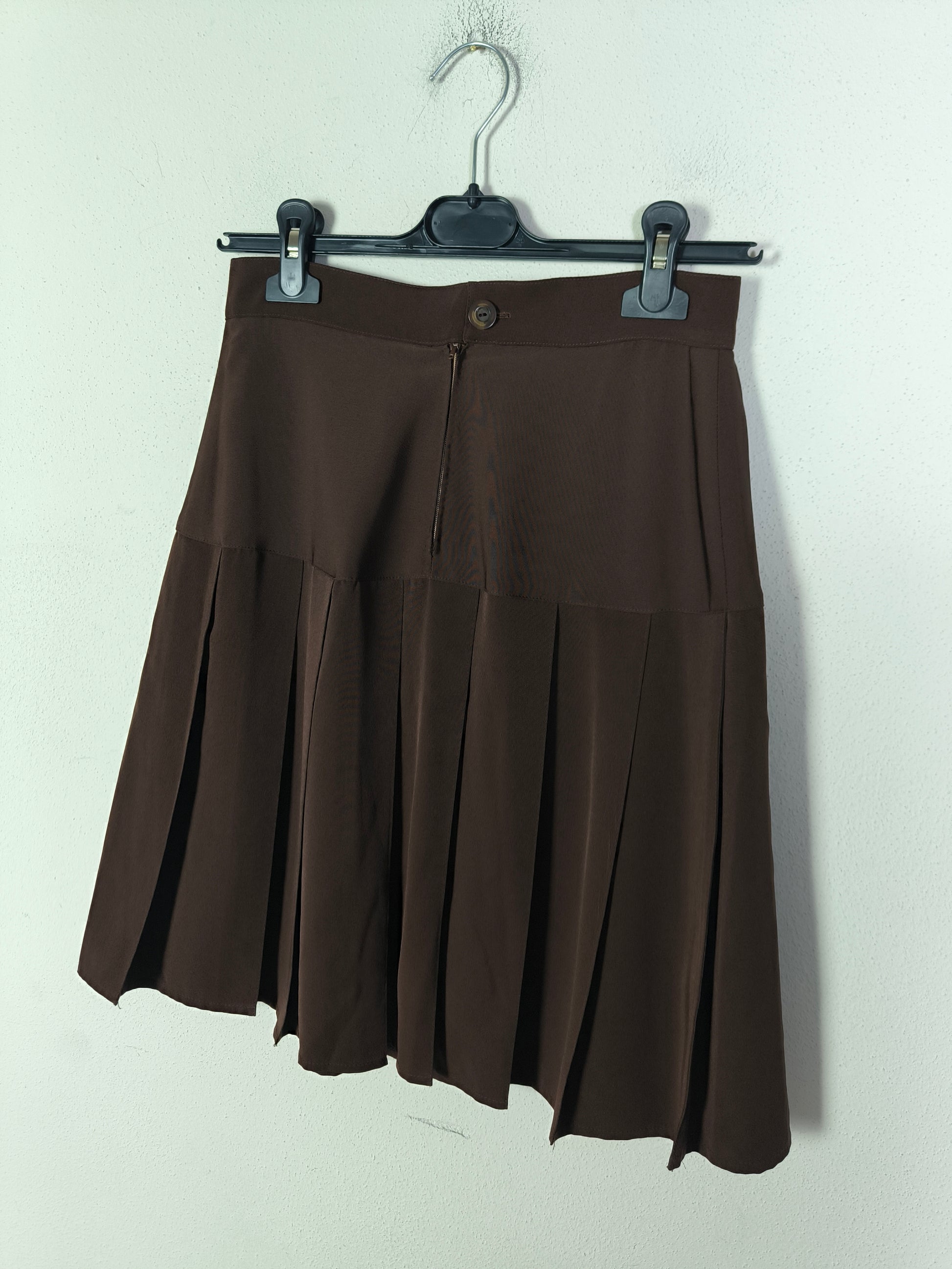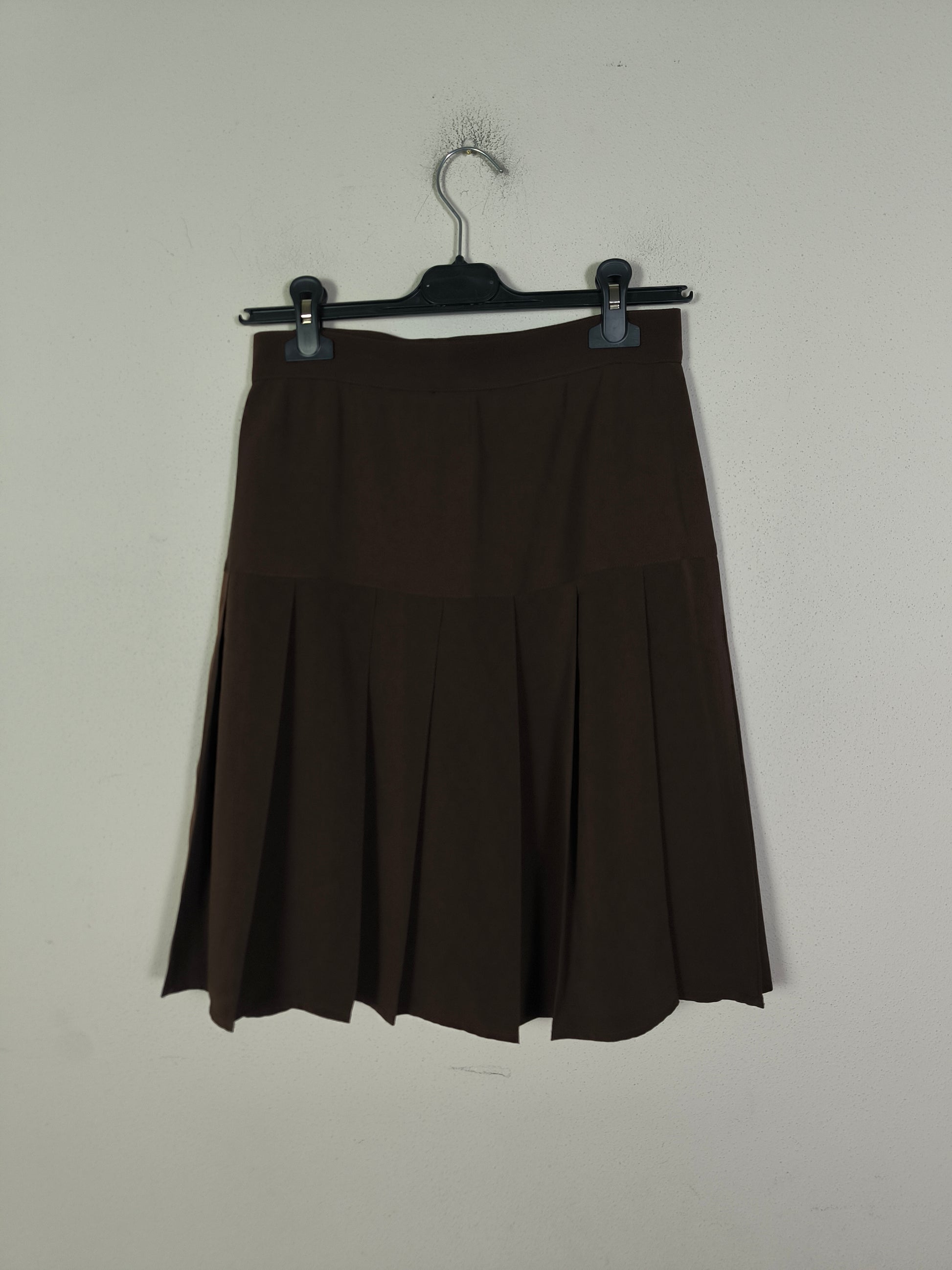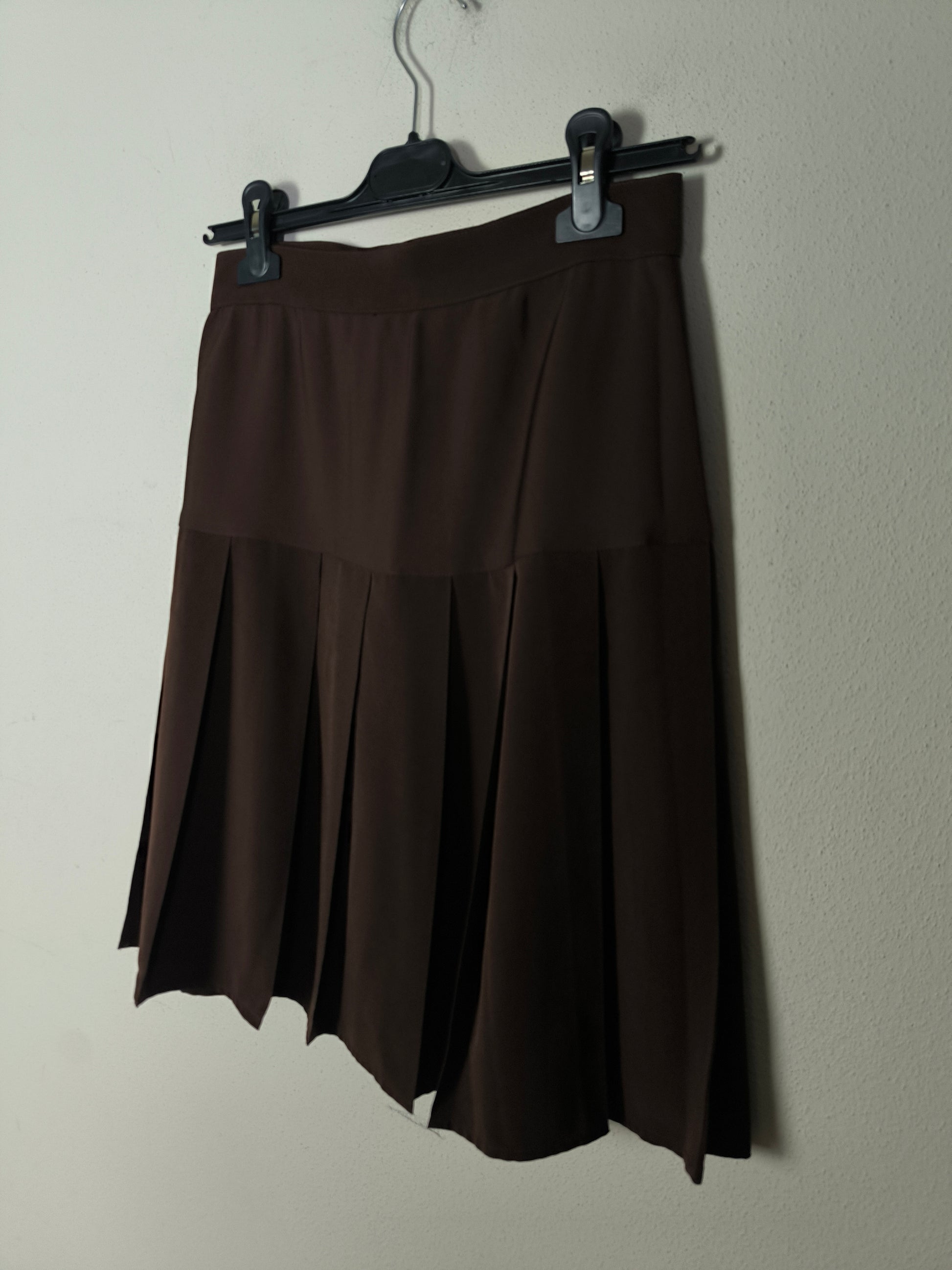 Gonnellina vintage Mirta, colore marrone, 100% lana pesantezza frescolana, vita alta, foderata.