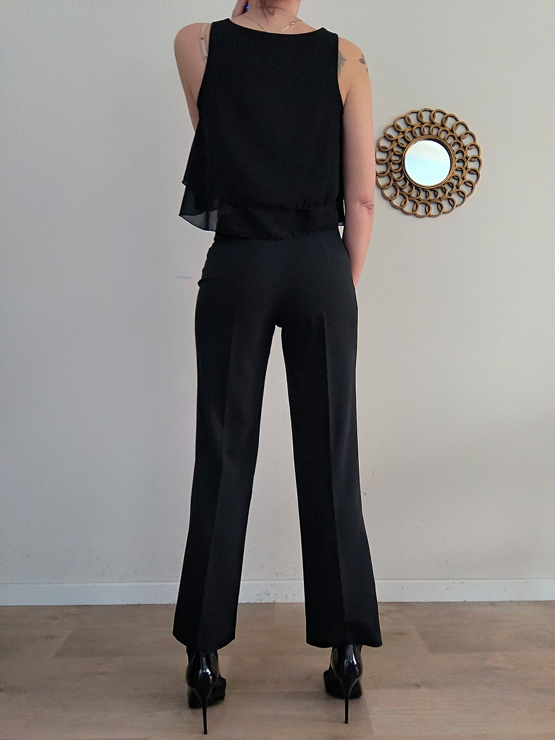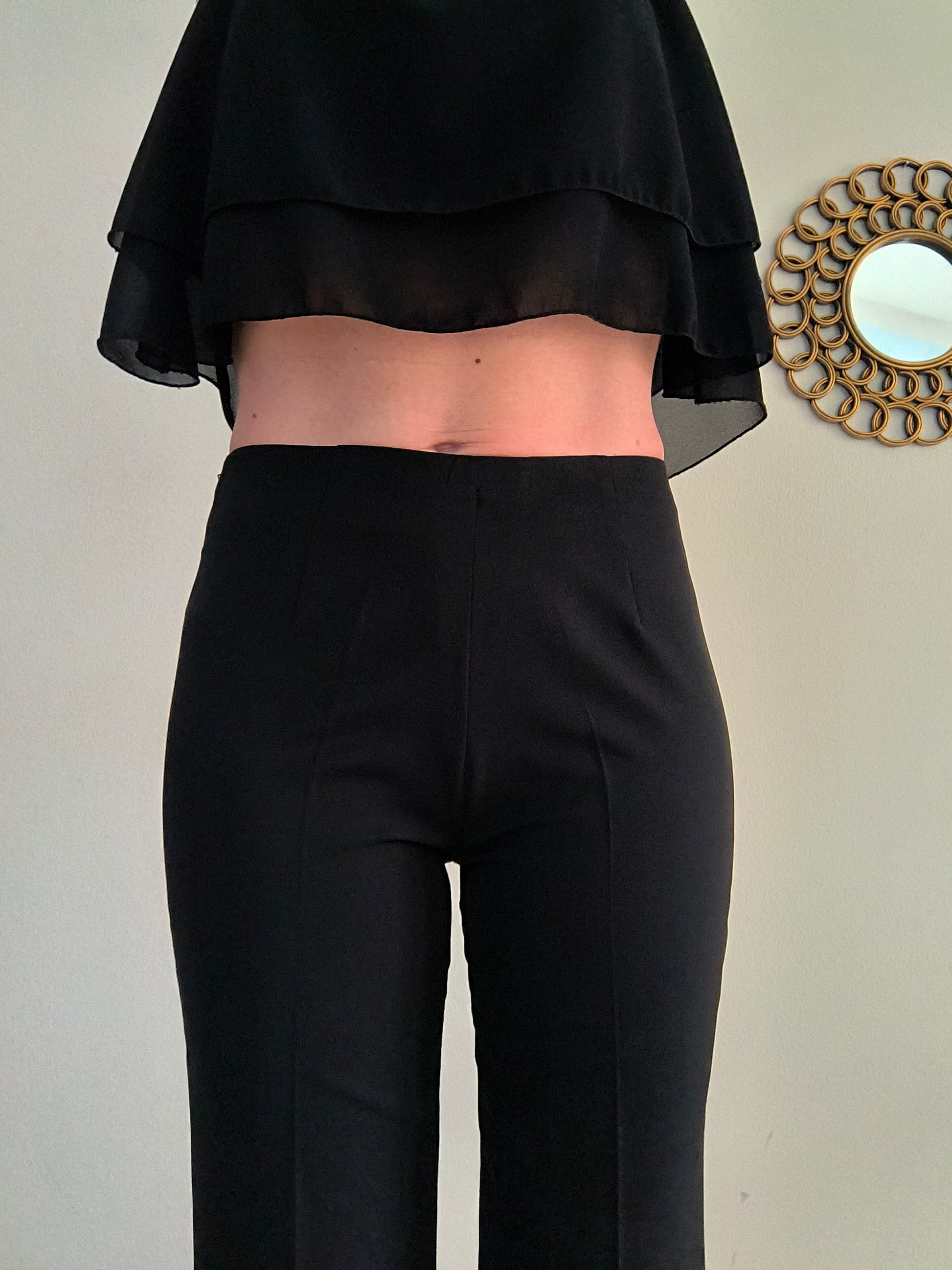 Pantalone KoKo, nero, gamba ampia e linea dritta, zip laterale.