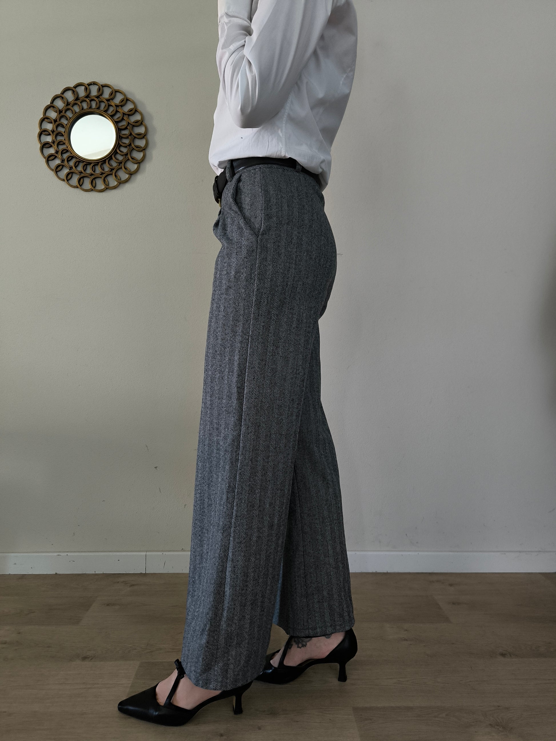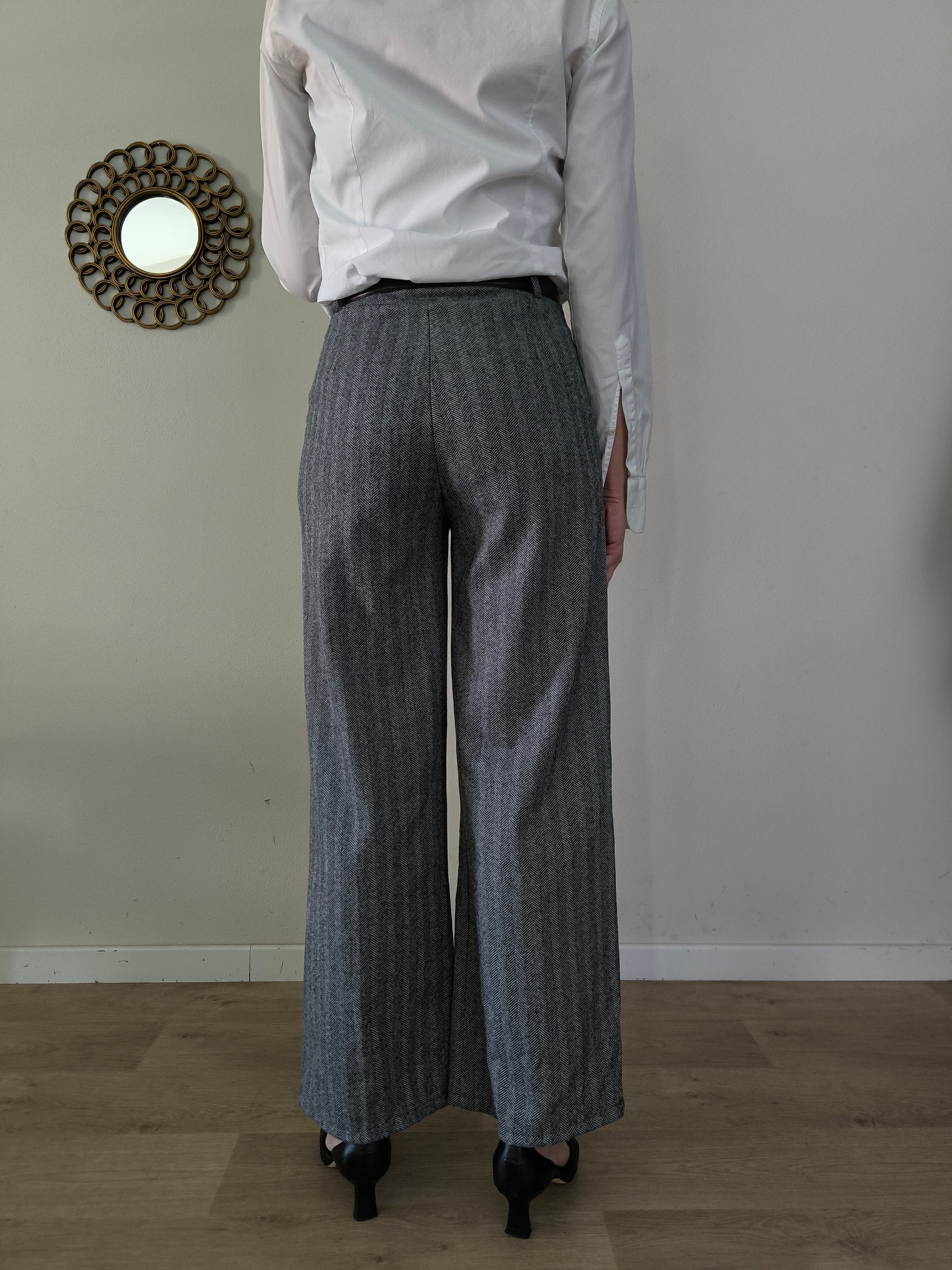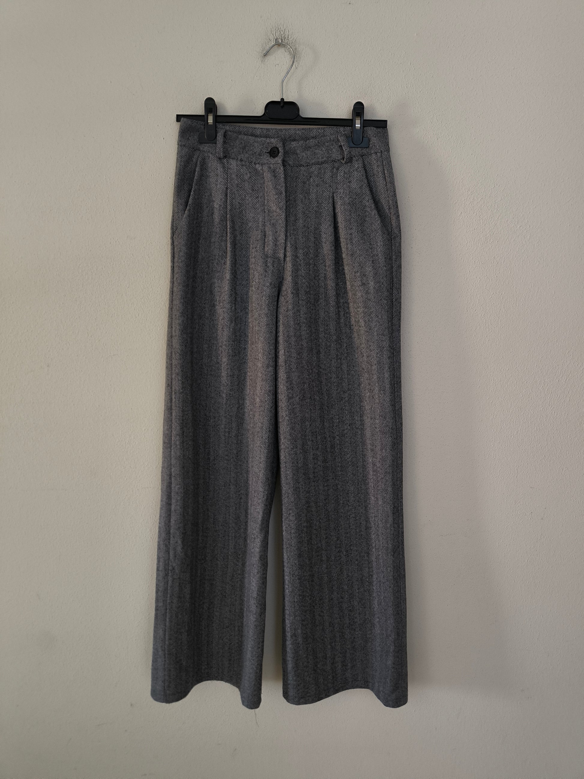 Pantapalazzo grigio, no brand, fantasia spinata,con tasche laterali.