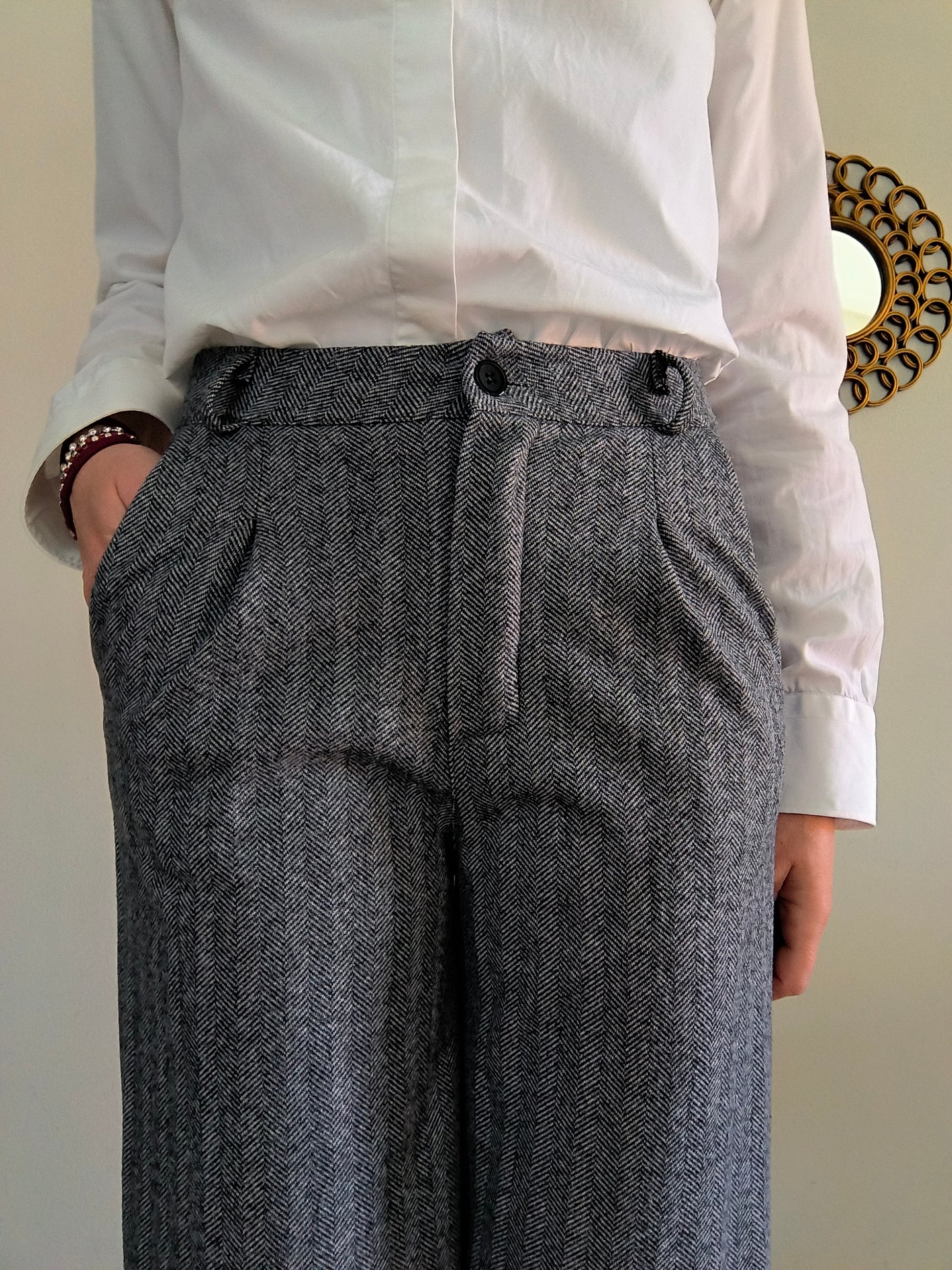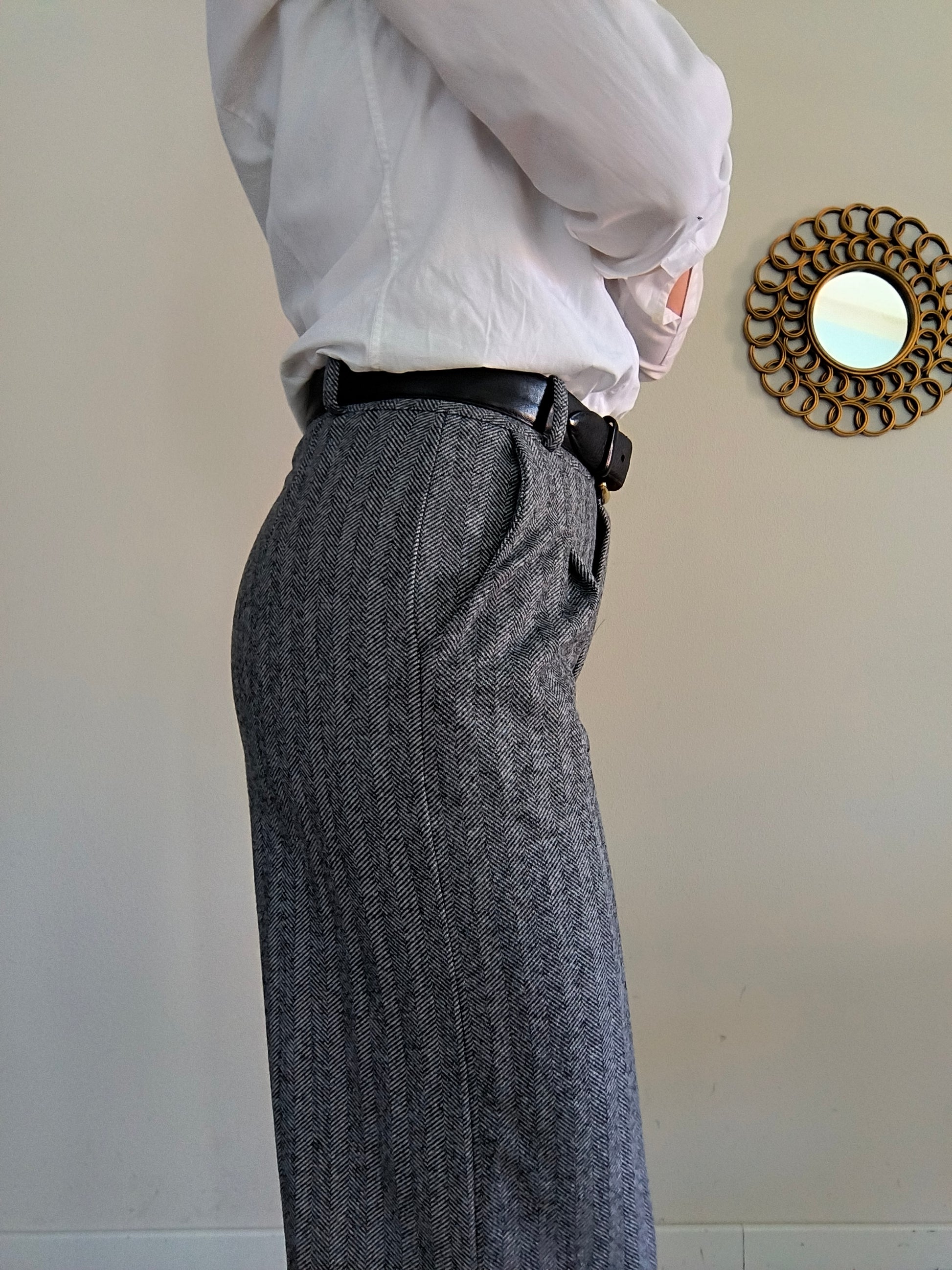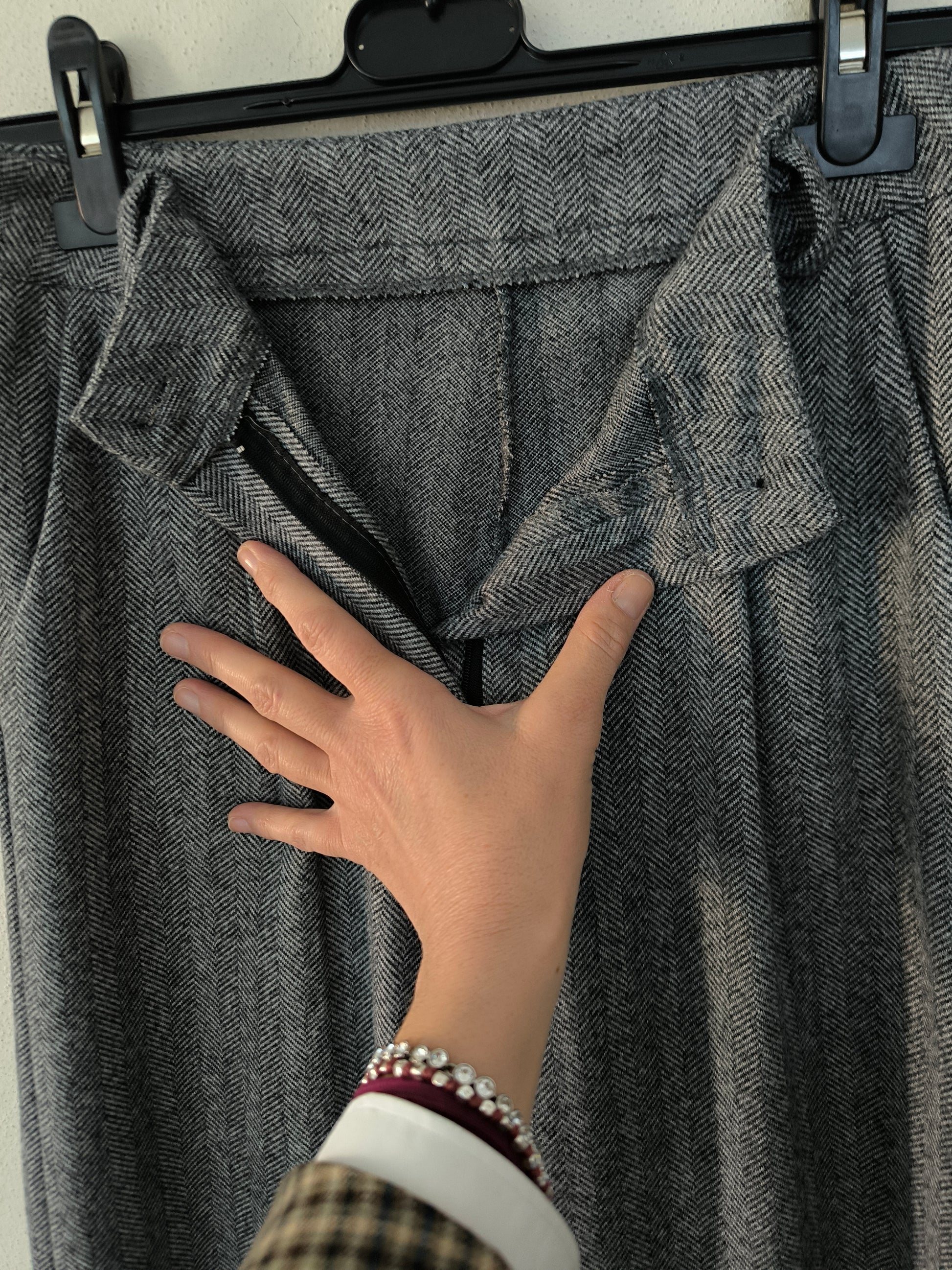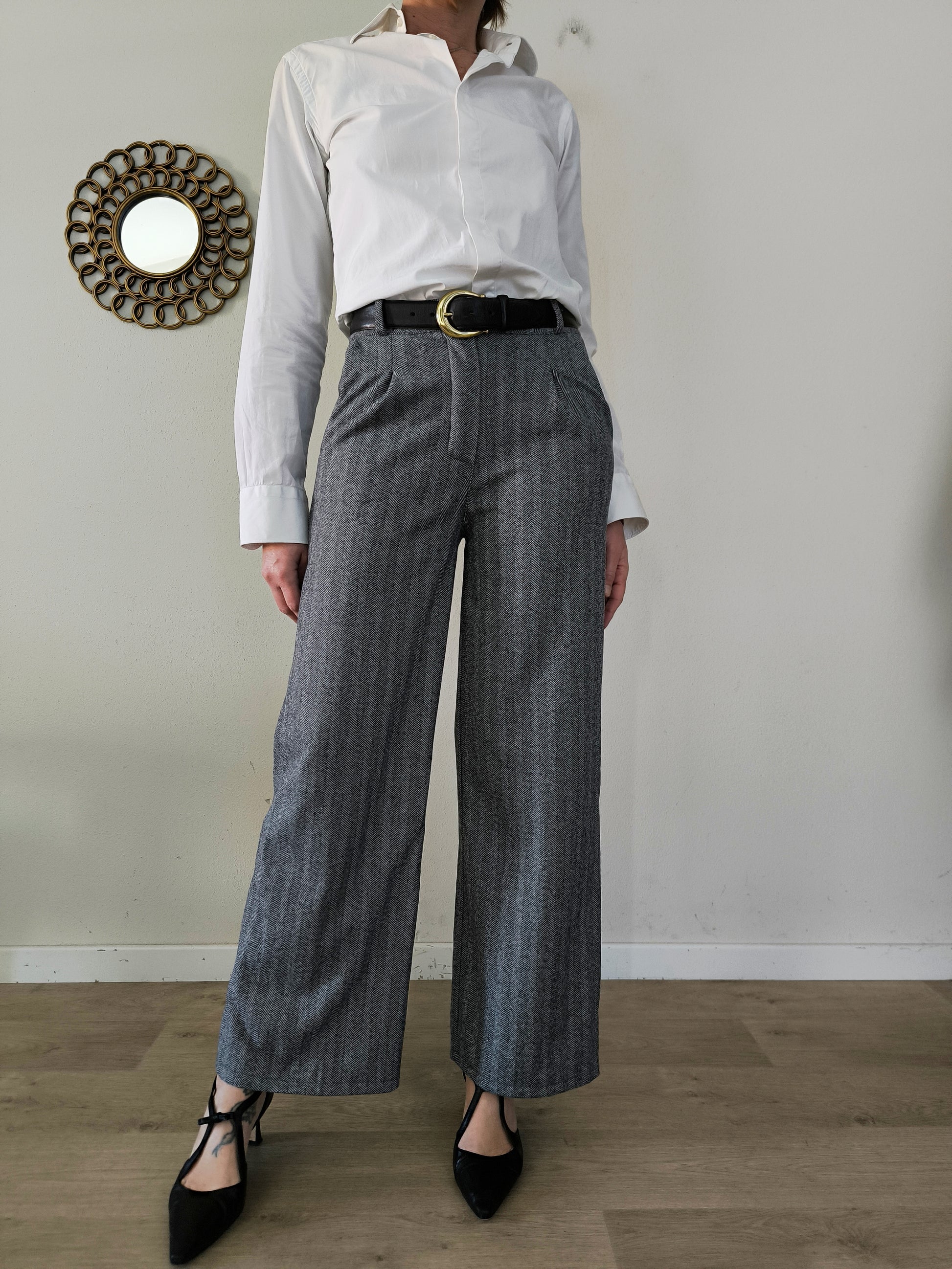 Pantapalazzo grigio, no brand, fantasia spinata,con tasche laterali.