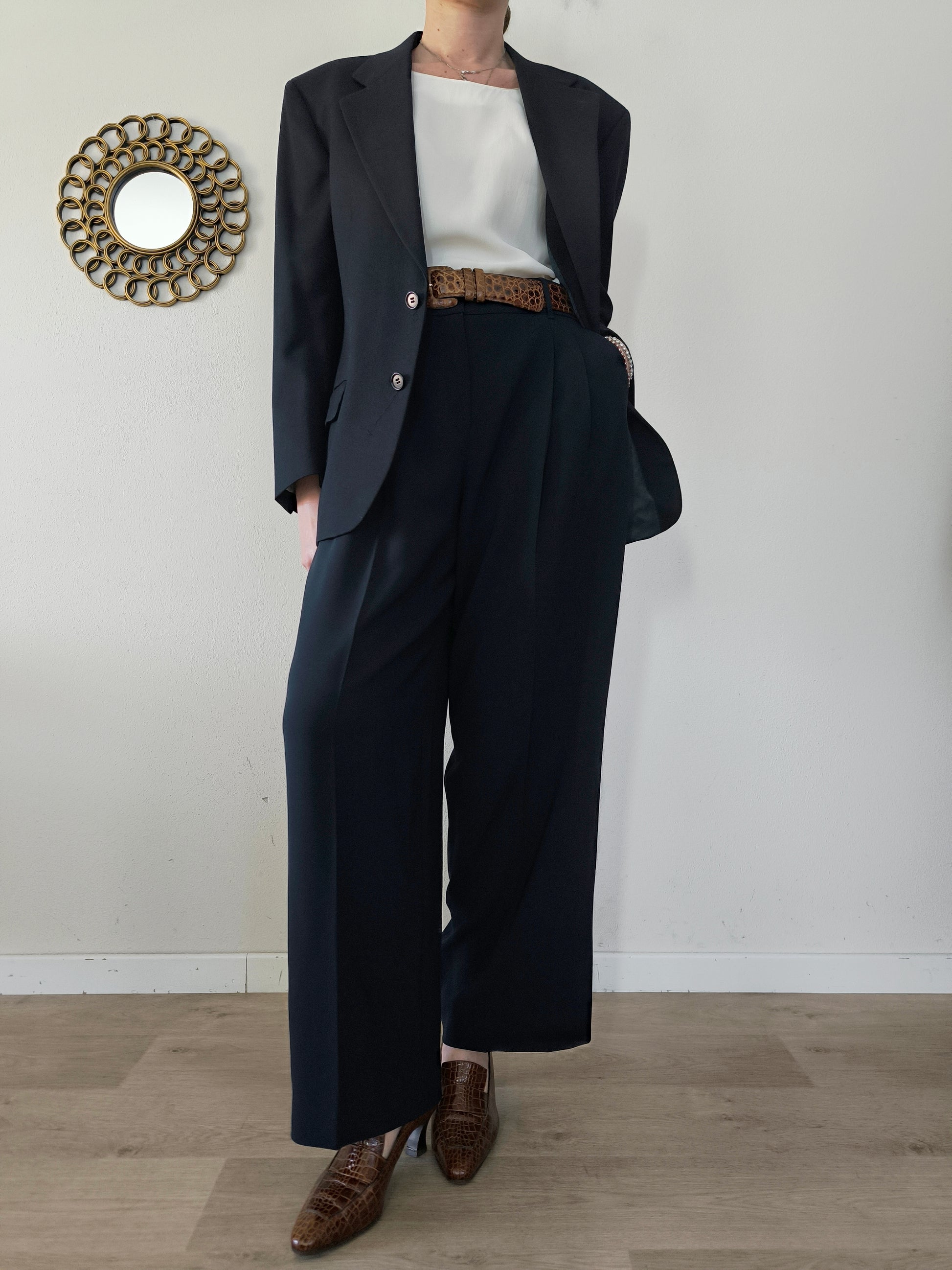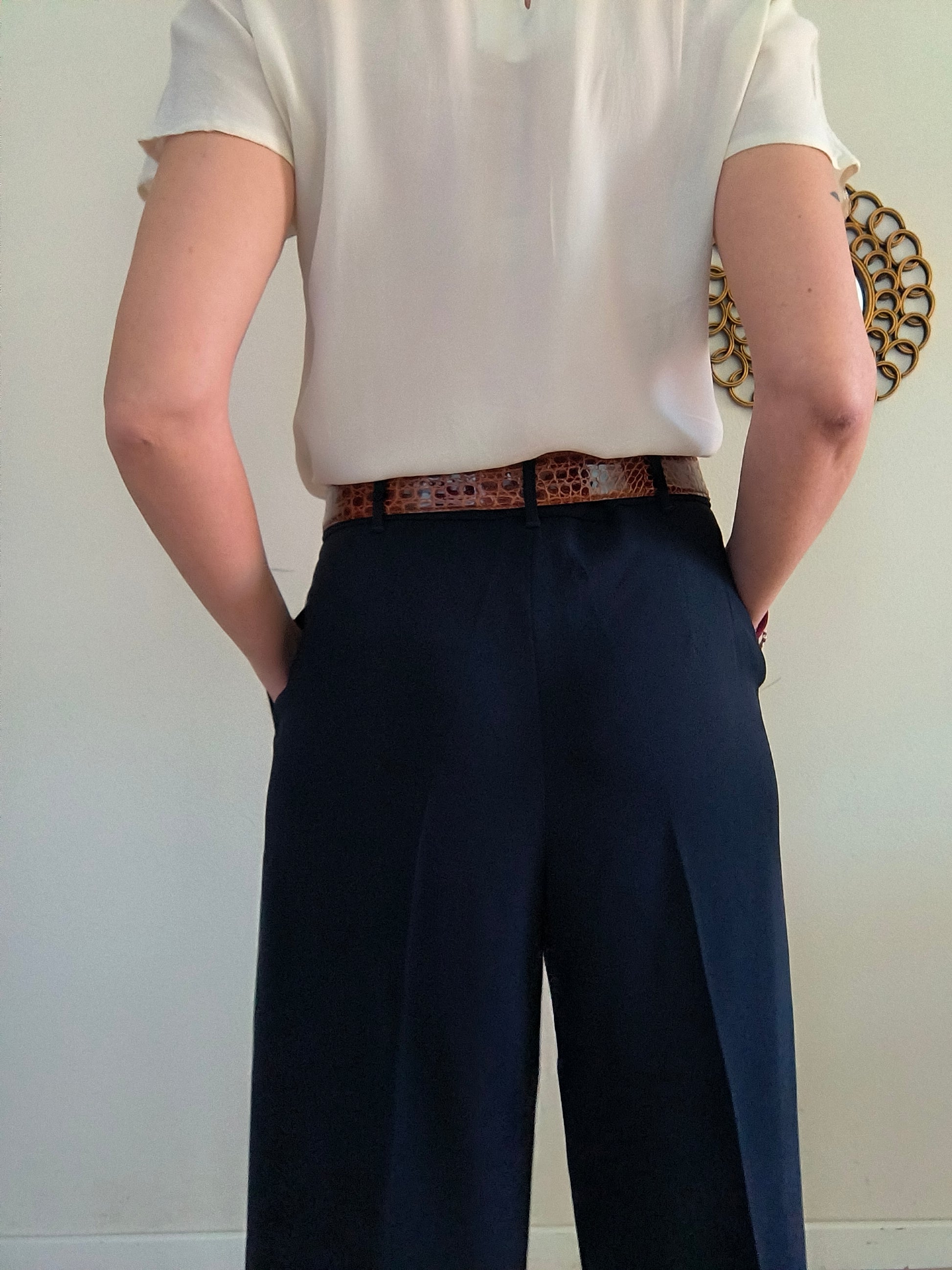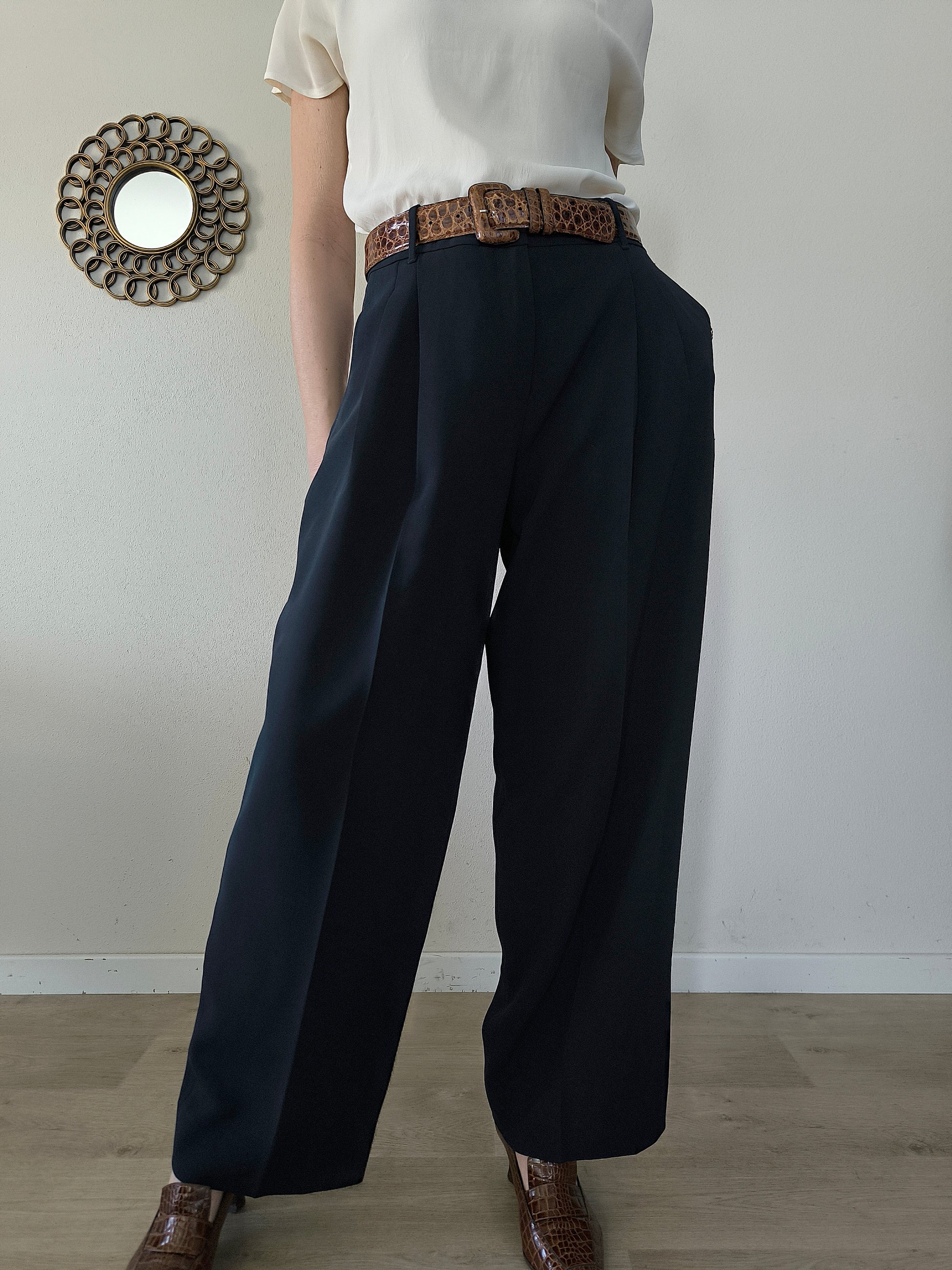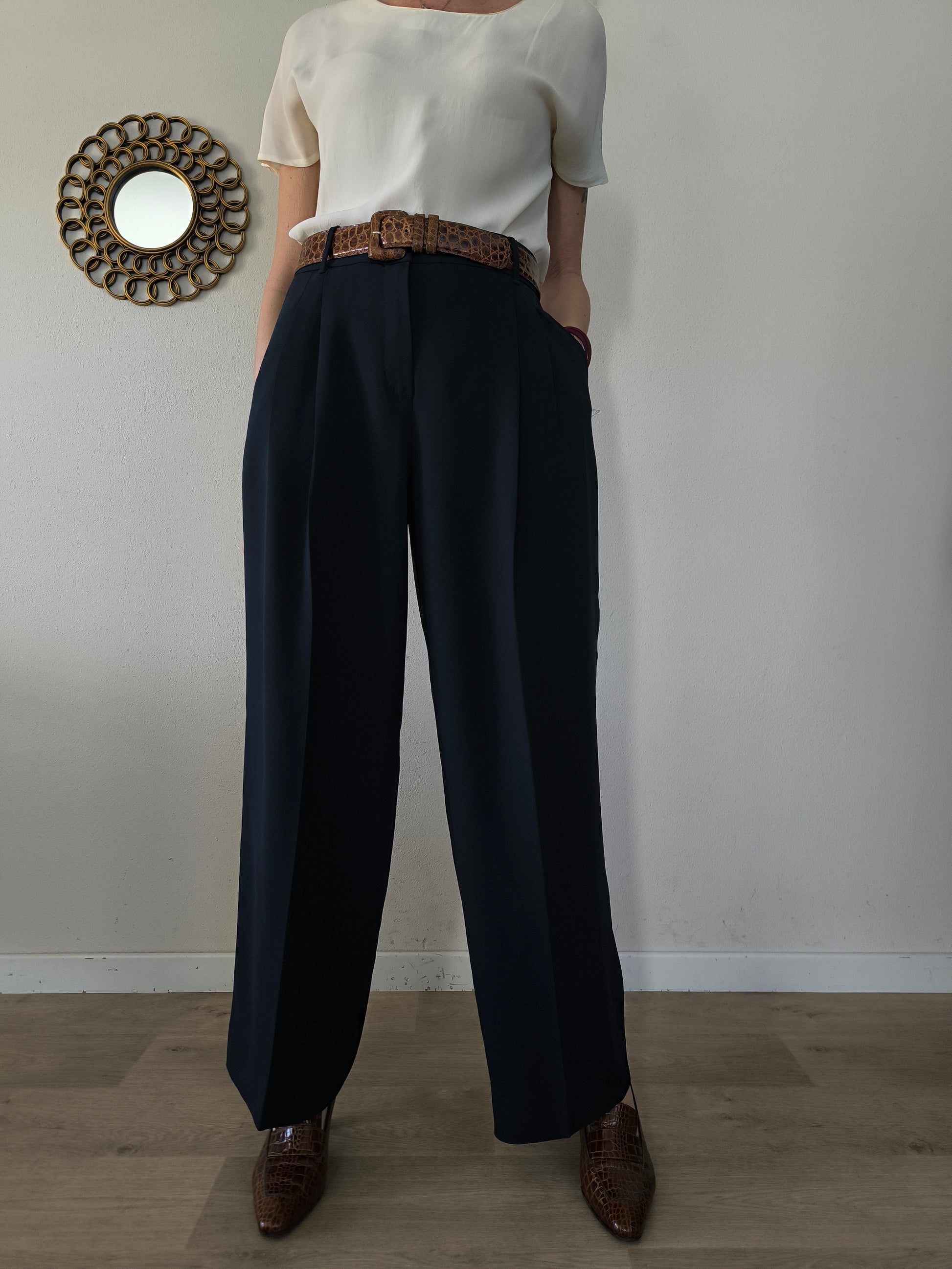 Pantapalazzo Max Mara, ( campionario etichetta rimossa) colore blu notte, vita alta con pences sul davanti, gamba ampia.