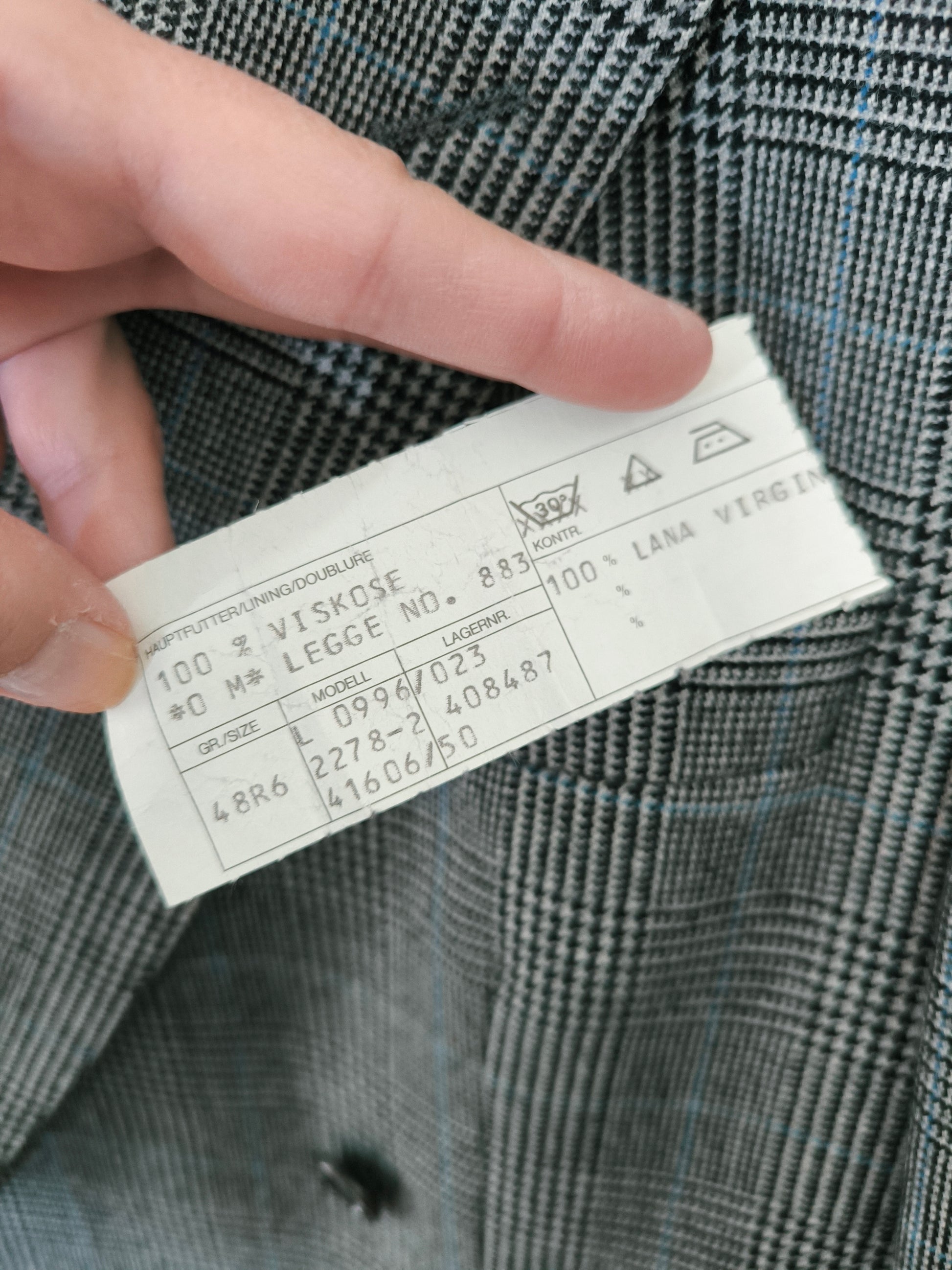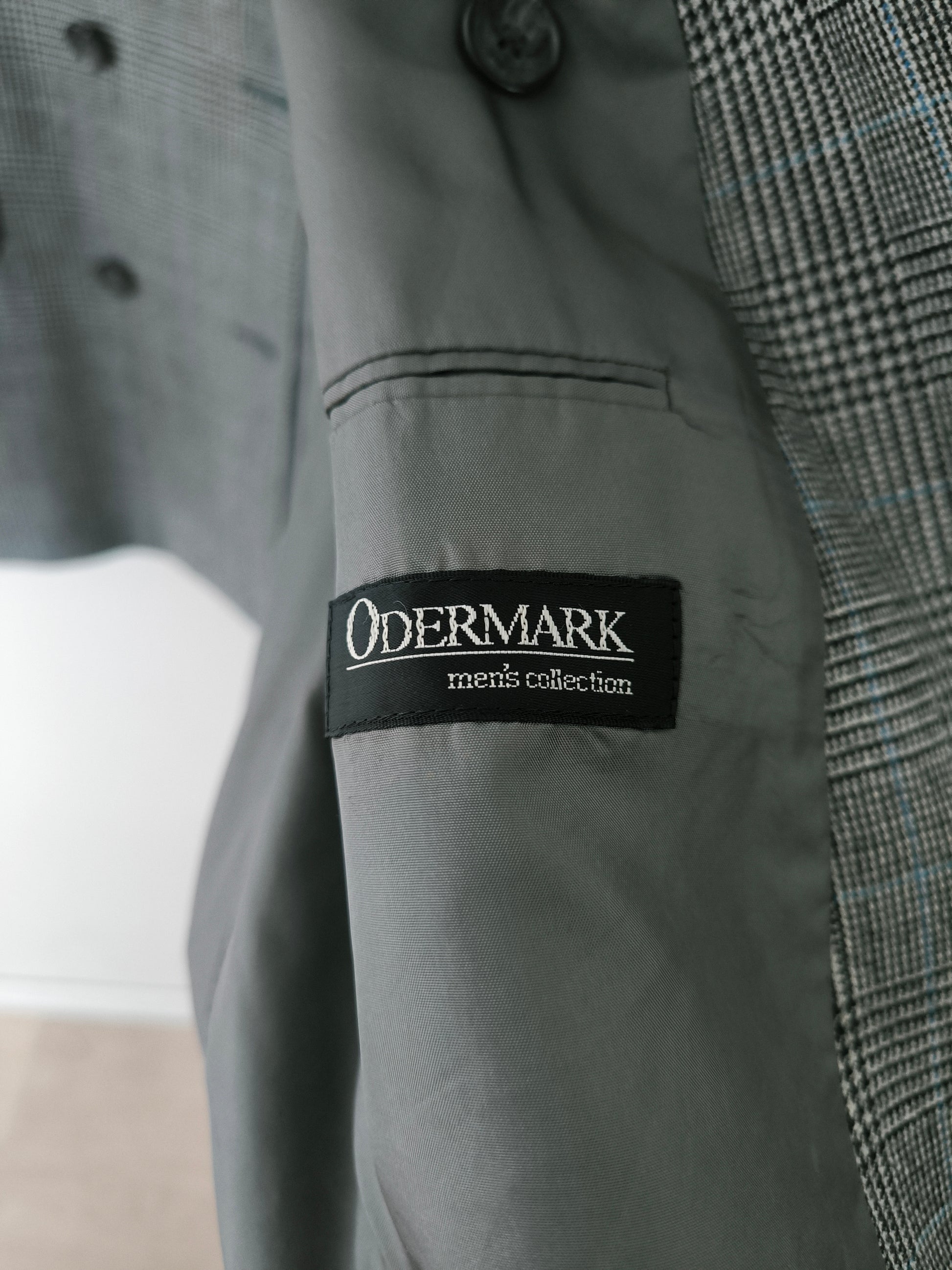 Completo maschile/ unisex Odermark, pura lana vergine, principe di Galles nero con sottile filato azzurro, composto da: